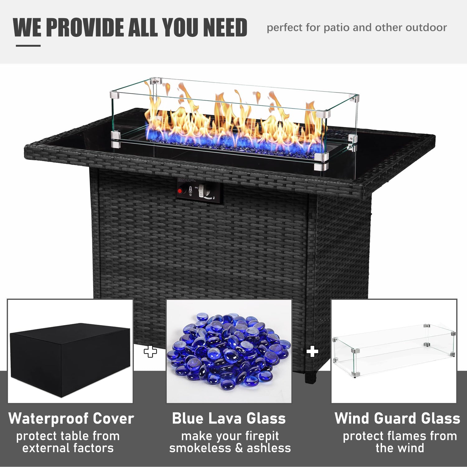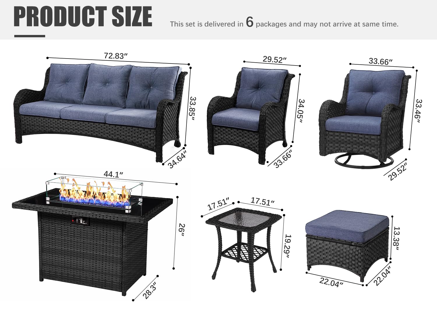 LayinSun 10 Pieces Outdoor Patio Furniture Set with Fire Pit Table, Rattan Wicker Sectional Swivel Rocker Chairs Sets with Ottomans, Swivel Glider Chairs, Single Chairs and Coffee Table