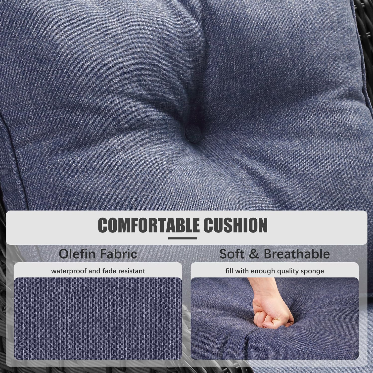 - EXTRA COMFORT CUSHION: Cushions are upholstered in top-of-the-line Olefin fabric, offering ultimate comfort, easy cleanability, and stain resistance. The 4-inch thick cushion is filled with a thickened high-resilience sponge to stay fluffy & non-deformation and give your body plenty of support.