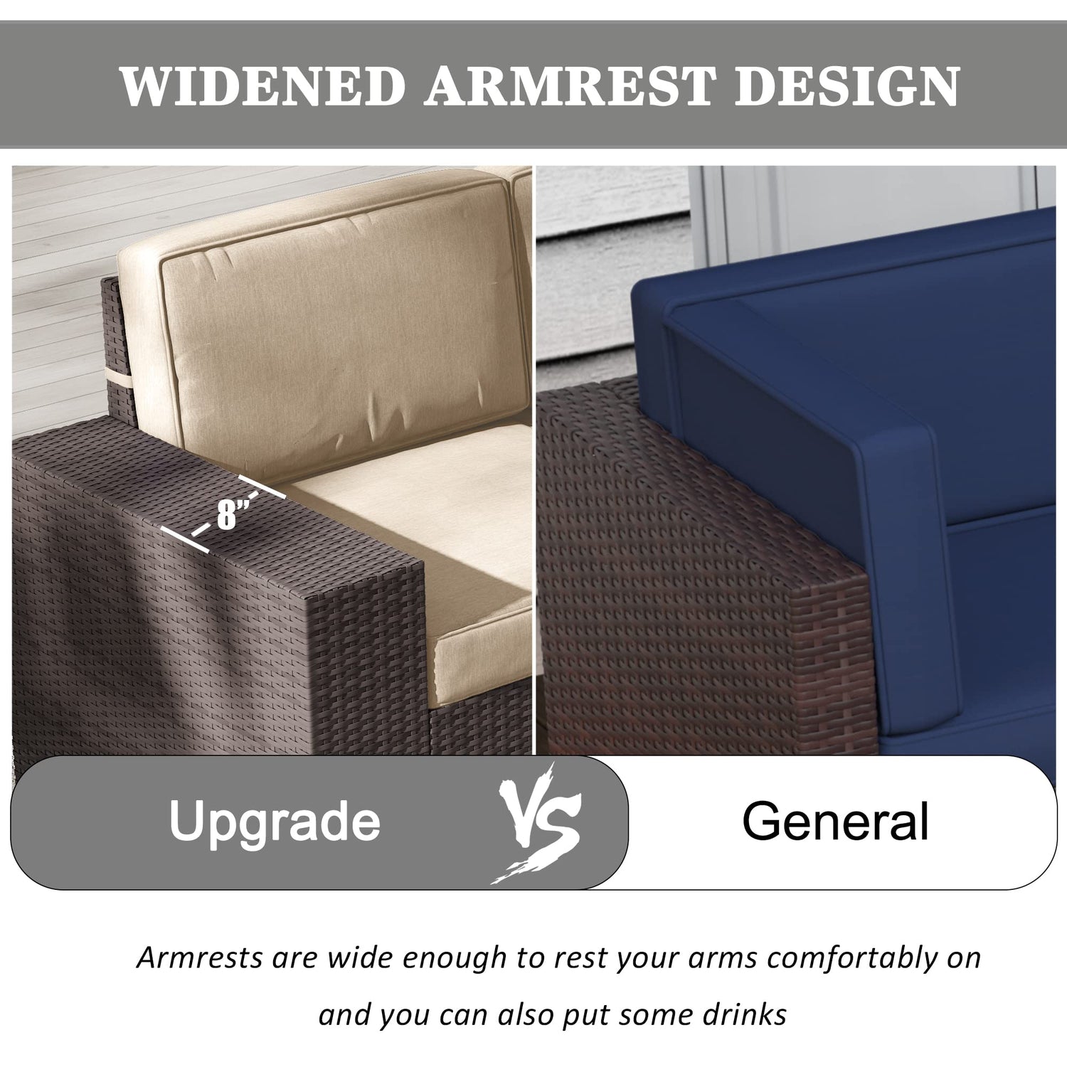 - FLEXIBLE COMBINATION SETTING: 7 pieces outdoor furniture sets come with 2 x Corner Sofas, 3 x Single Sofas, 1 x Fire Pit Table, and 1 x Coffee Table. It allows being pieced together in any combination to suit your needs and match your space