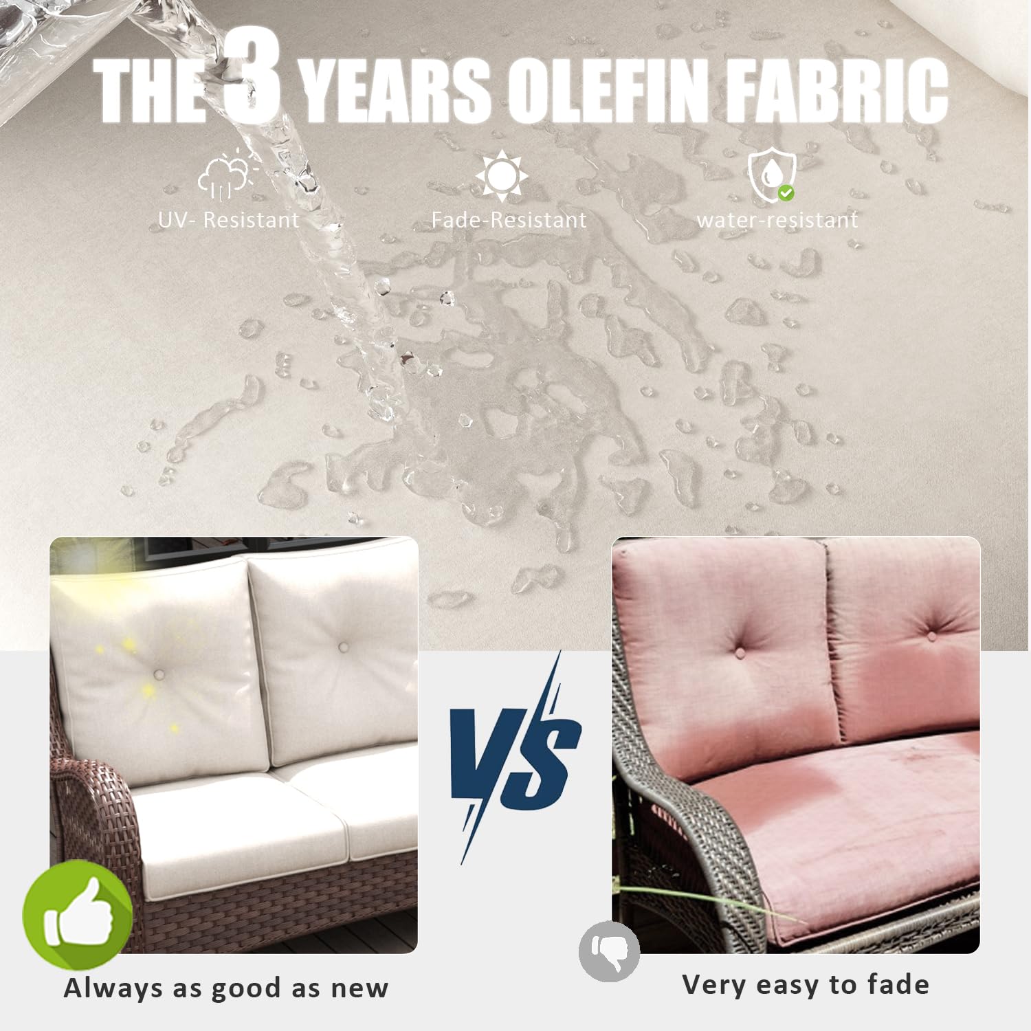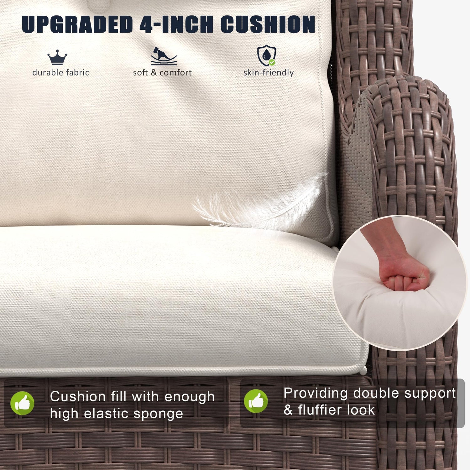 - EXTRA COMFORT CUSHION: Cushions are upholstered in top-of-the-line Olefin fabric, offering ultimate comfort, easy cleanability, and stain resistance. The 4-inch thick cushion is filled with a thickened high-resilience sponge to stay fluffy & non-deformation and give your body plenty of support.