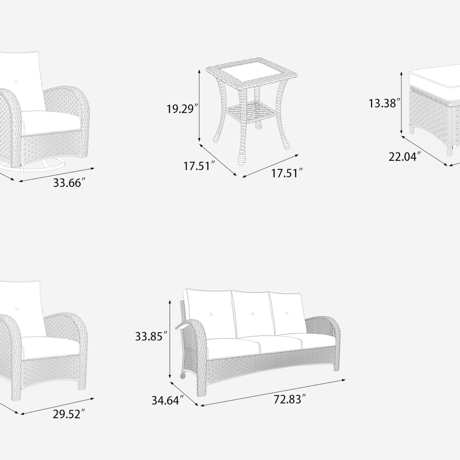 Details: This swivel chair set is the ultimate in comfort and value, relaxing with your closest friends or sitting outside alone in the sun. Elegant and ergonomically designed curved chair arms fit perfectly into your arms, and the wide backrest that gently wraps around your body supports your neck and spine. The right height allows your legs to relax and sag, artfully designed to make you comfortable when sitting for long periods.