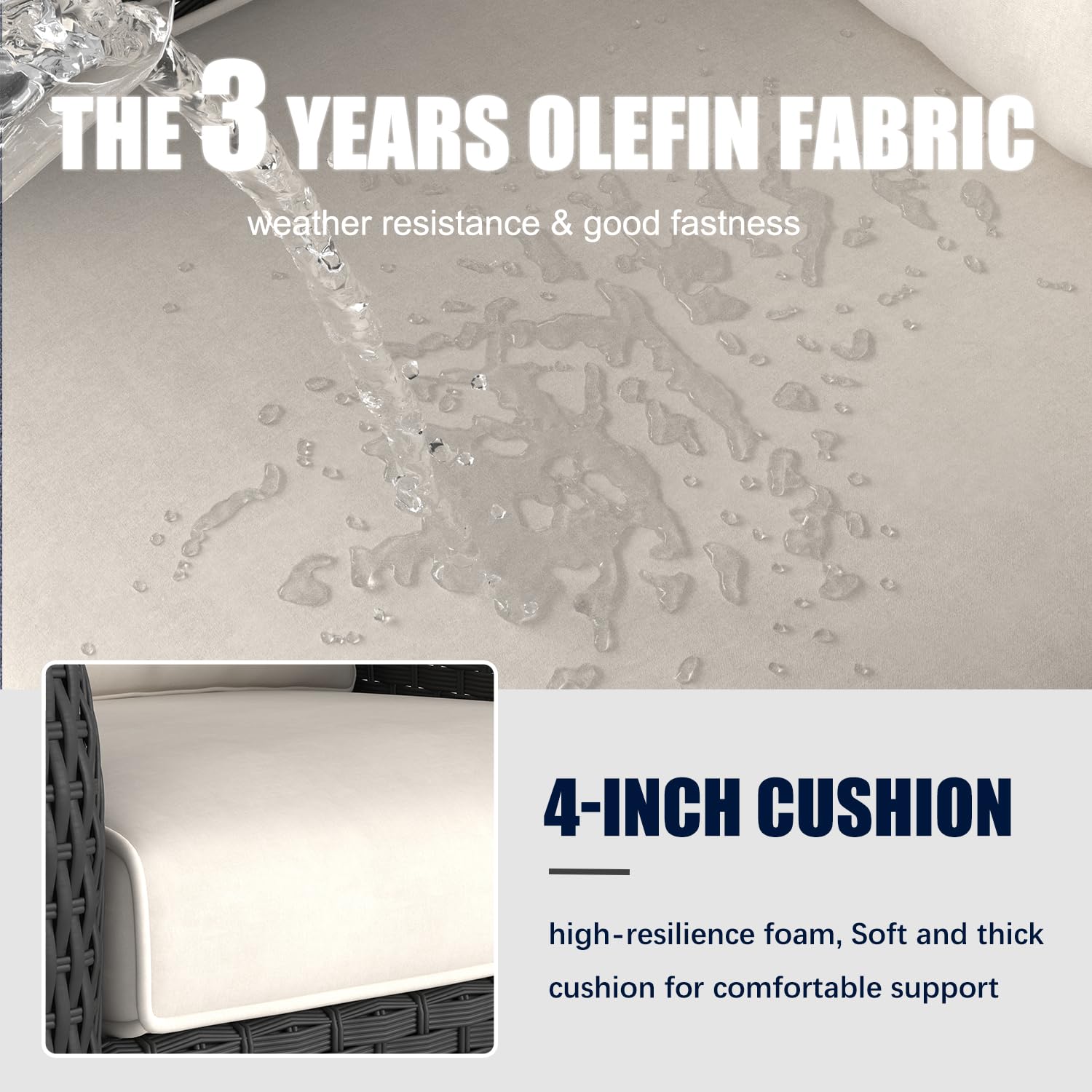 - SOFT AND COMFORTABLE: Our cushions filled with 4-inch soft elastic sponge to provide you comfortable experience.Olefin durable fabric more environmentally, with good waterproof and light fastness up to 2000 hours.