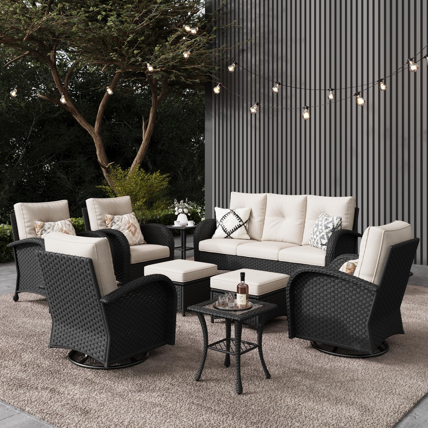 LayinSun 9 Pieces Outdoor Patio Furniture Set, Rattan Wicker Sectional Swivel Rocker Chairs Sets
