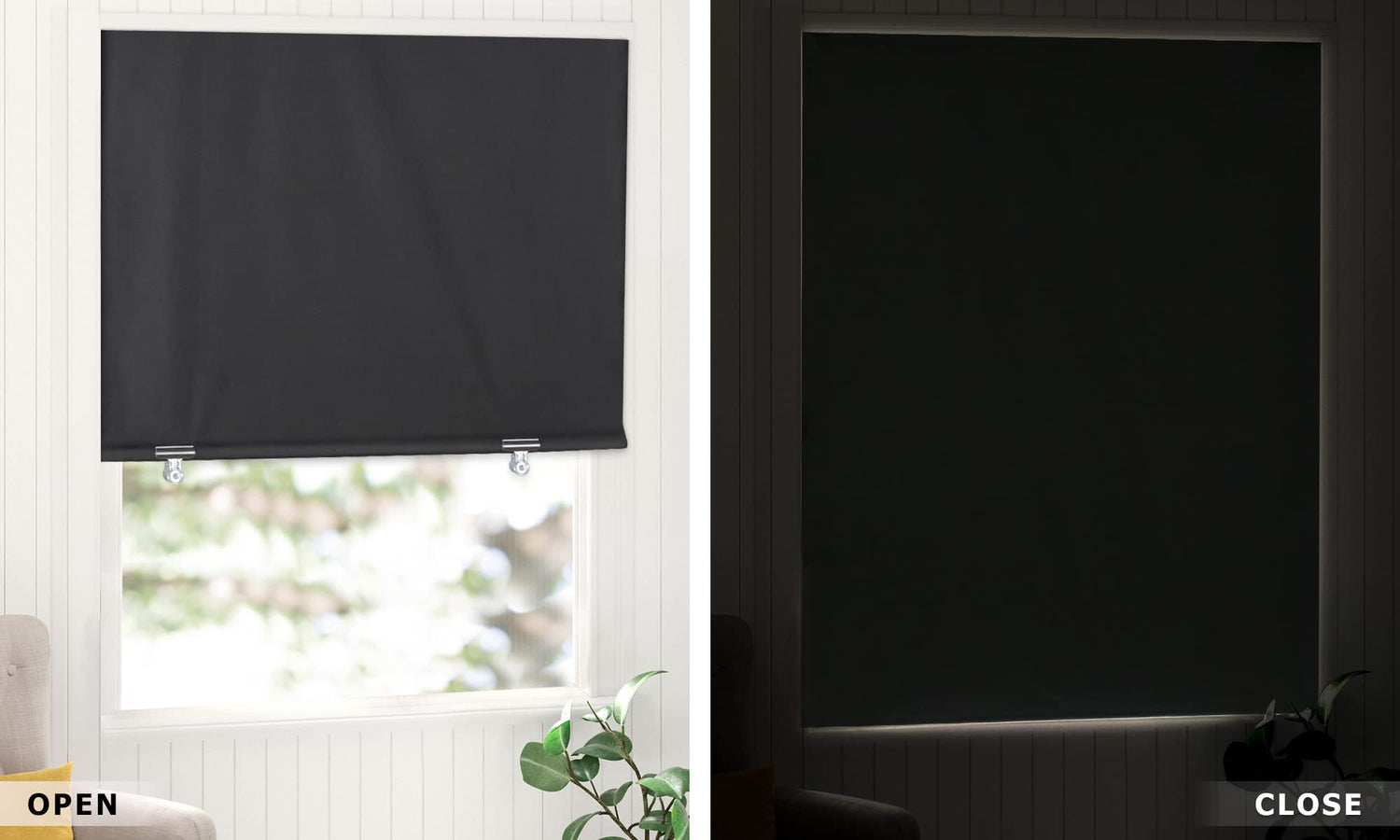 - 100% Blackout Roller Shade: Made of polyester fabric coated with blackout backing. Blocking out 100% light for complete privacy, light control and UV protection for bedrooms, children’s rooms and movie rooms. Excellent for deeper and longer sleepers.
