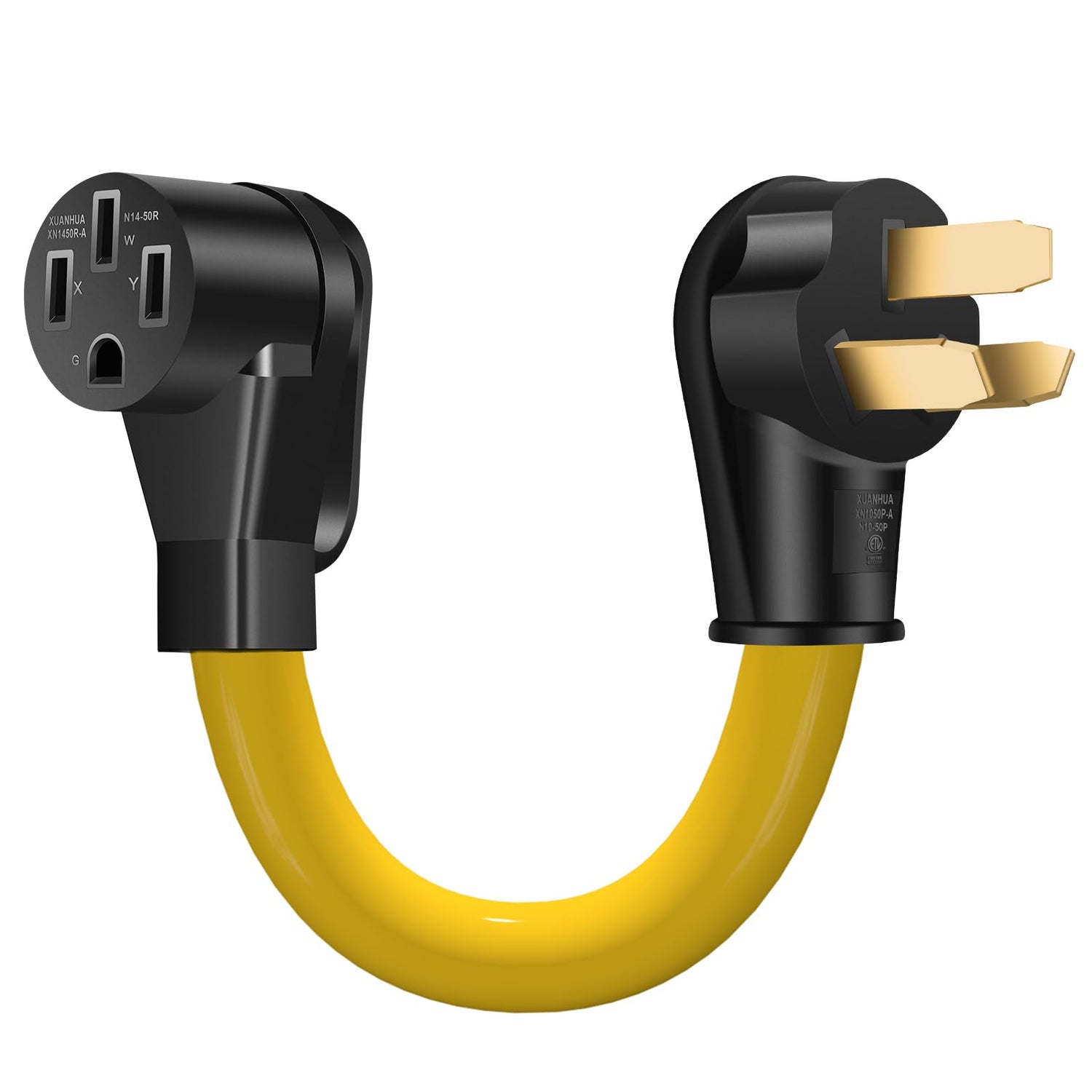 This Adapter Cord is from a 50 Amp 3Prong old style Dryer/Range/Electrical stove 10-50 Plug right-angle type to 4Prong 14-50 female connector, Support max 50 AMP loading, It is not for RV, It is not for RV.