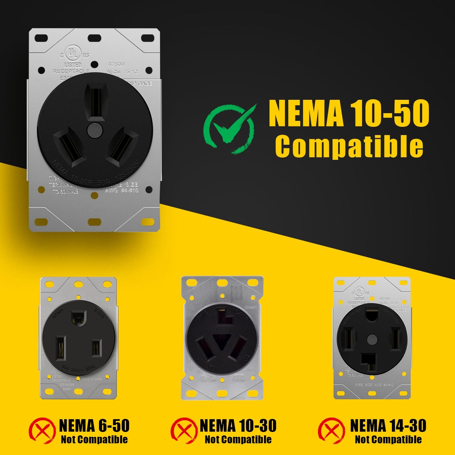 - 【Female Receptacle】4 Prong 50 Amp, NEMA 14-50R,125/250 Volts, Compatible with Tesla and other electric vehicle charger