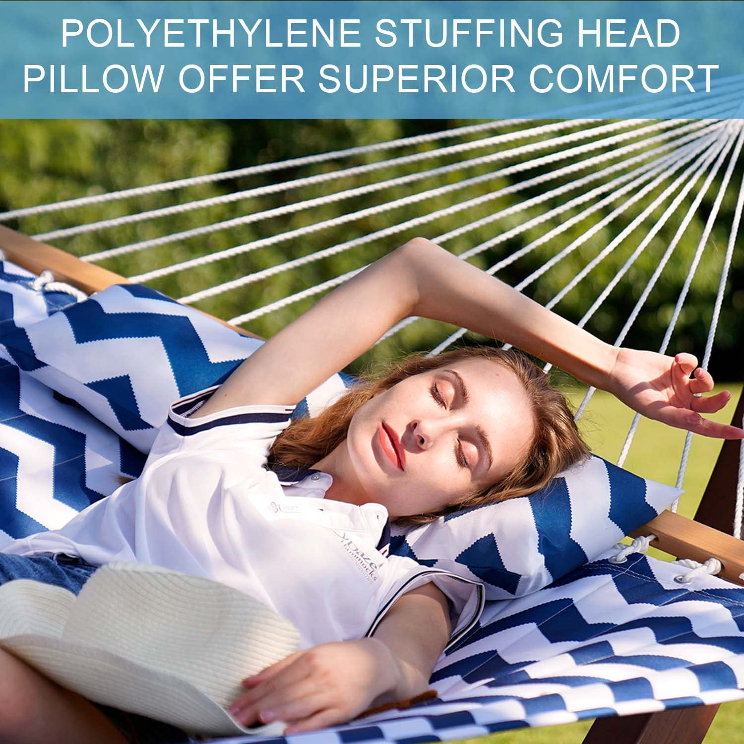 Lazy Daze Hammocks 12 FT Double Quilted Hammock with Spreader Bars and Detachable Pillow, 2 Person Hammock for Outdoor Patio Backyard Poolside, 450 LBS Weight Capacity, Blue Chevron Stripe