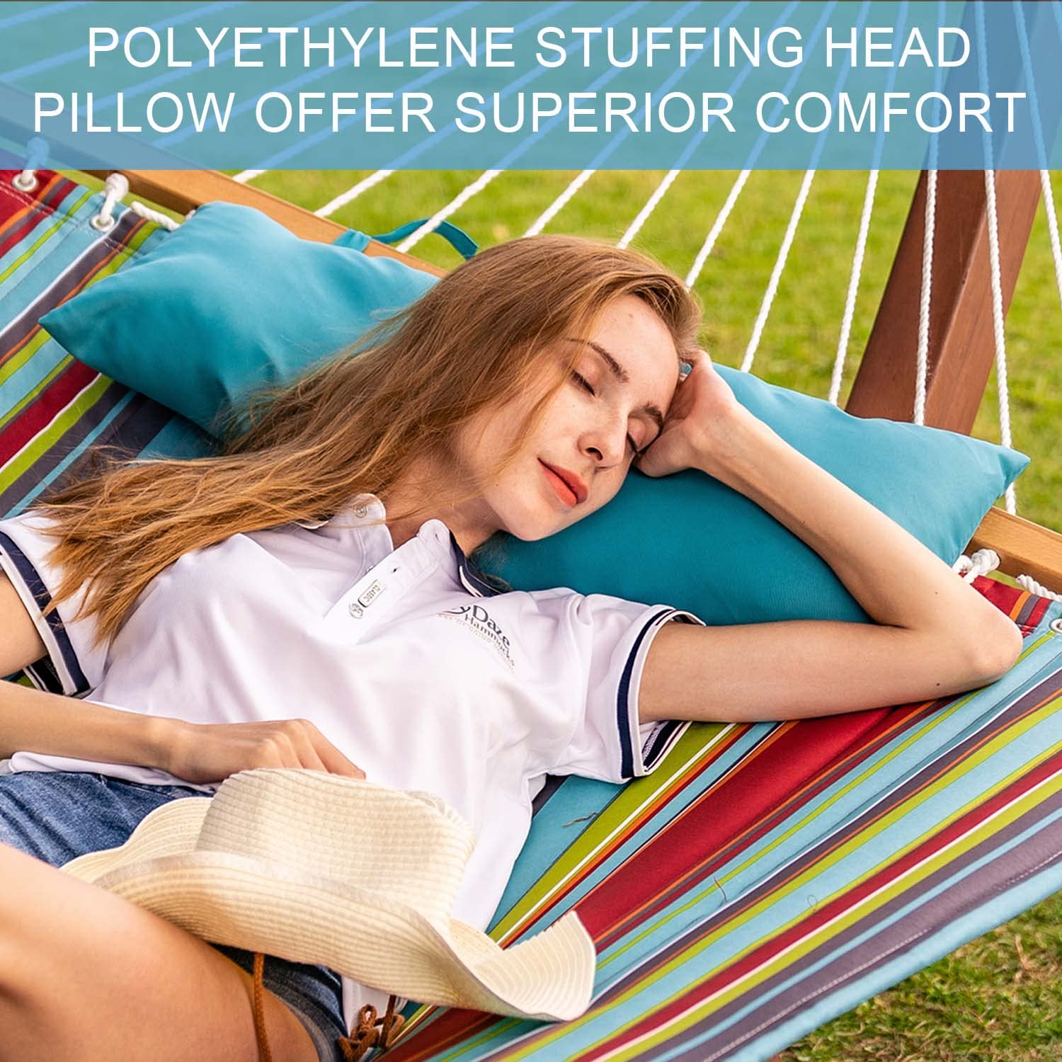 Lazy Daze Hammocks 12 FT Quilted Fabric Double Hammock with Spreader Bars and Detachable Pillow, 2 Person Hammock for Outdoor Patio Backyard Poolside, 450 LBS Weight Capacity, Blue&Red Stripes