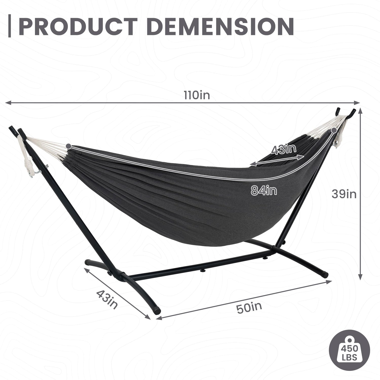 Details: Lazy Daze Hammocks Double Hammock with 9ft Space-Saving Steel Stand Includes Portable Carrying Case, 450 Pounds Capacity (Dark Grey)