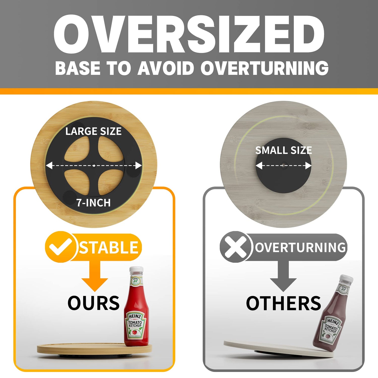 - ✔️【UPDATED DESIGN】Higher quality swivel base will enjoy the ultimate in comfort and convenience that a smooth and silent rotation will bring, compared to other products, our bottom swivel section (7") is larger to effectively prevent dumped items. Will not be like other lazy Susan, because of uneven gravity makes it difficult to rotate.