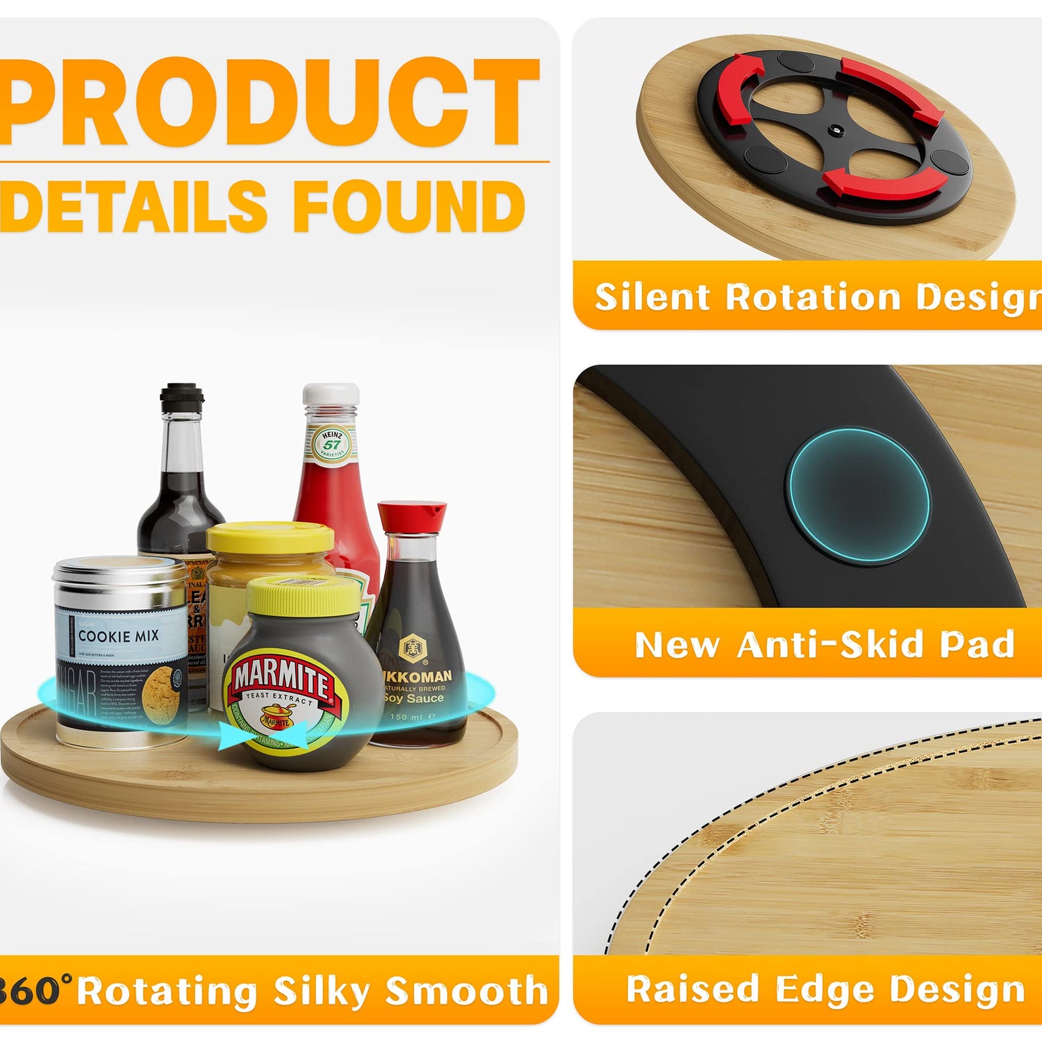 - ✔️【EASY TO REACH FROM ANY SIDE】This Lazy susan is 360-Degree turntable, which makes it ideal for cabinets or counters. Especially in corner cabinets and deep base cabinets where items can be hard to reach, always convenient to get things from upper shelves or corner cabinet just by a simple spin!