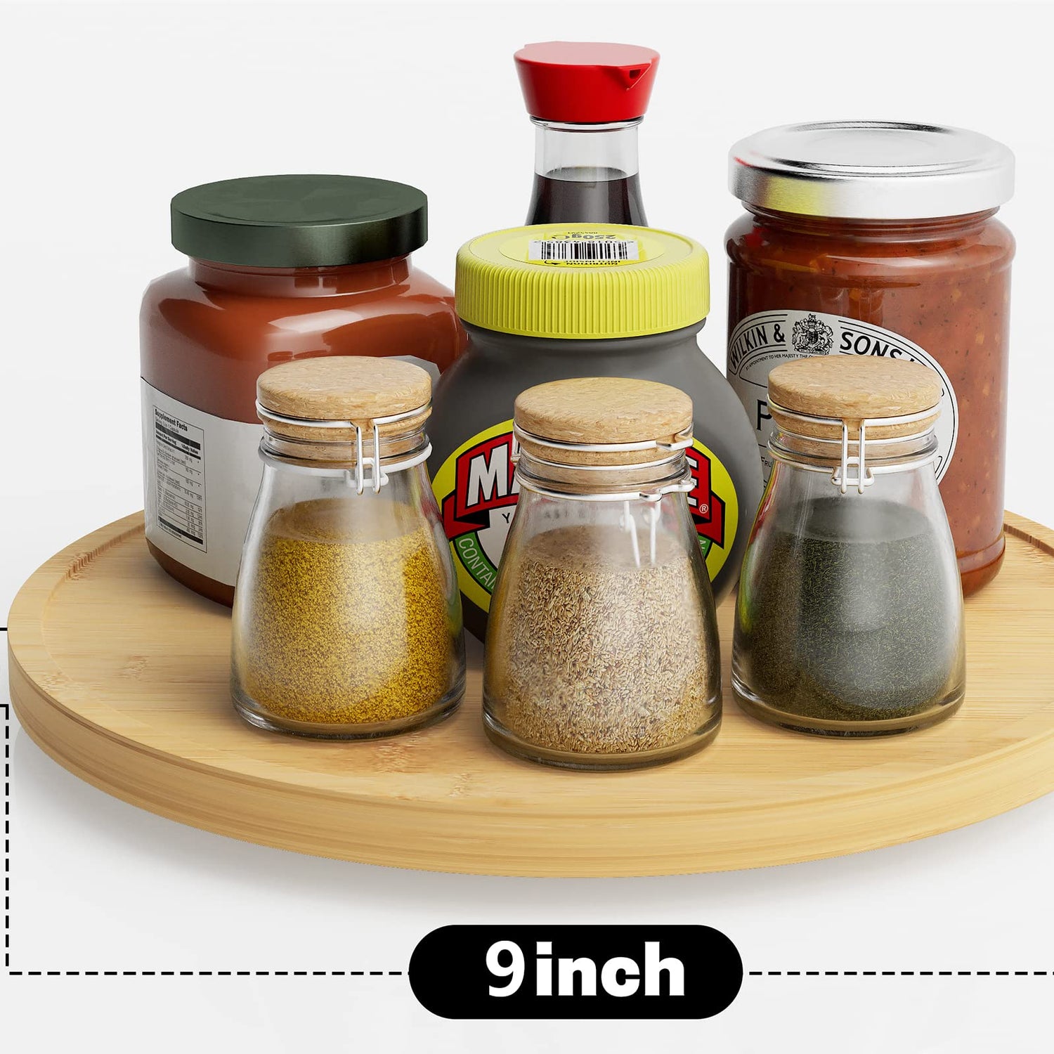 Lazy Susan Organizer Homerays 9 Inch Non-Skid Bamboo Lazy Susan for Kitchen Rotating Spice Rack for Kitchen Cabinet, Wood Turntable for Kitchen Countertop Organizer
