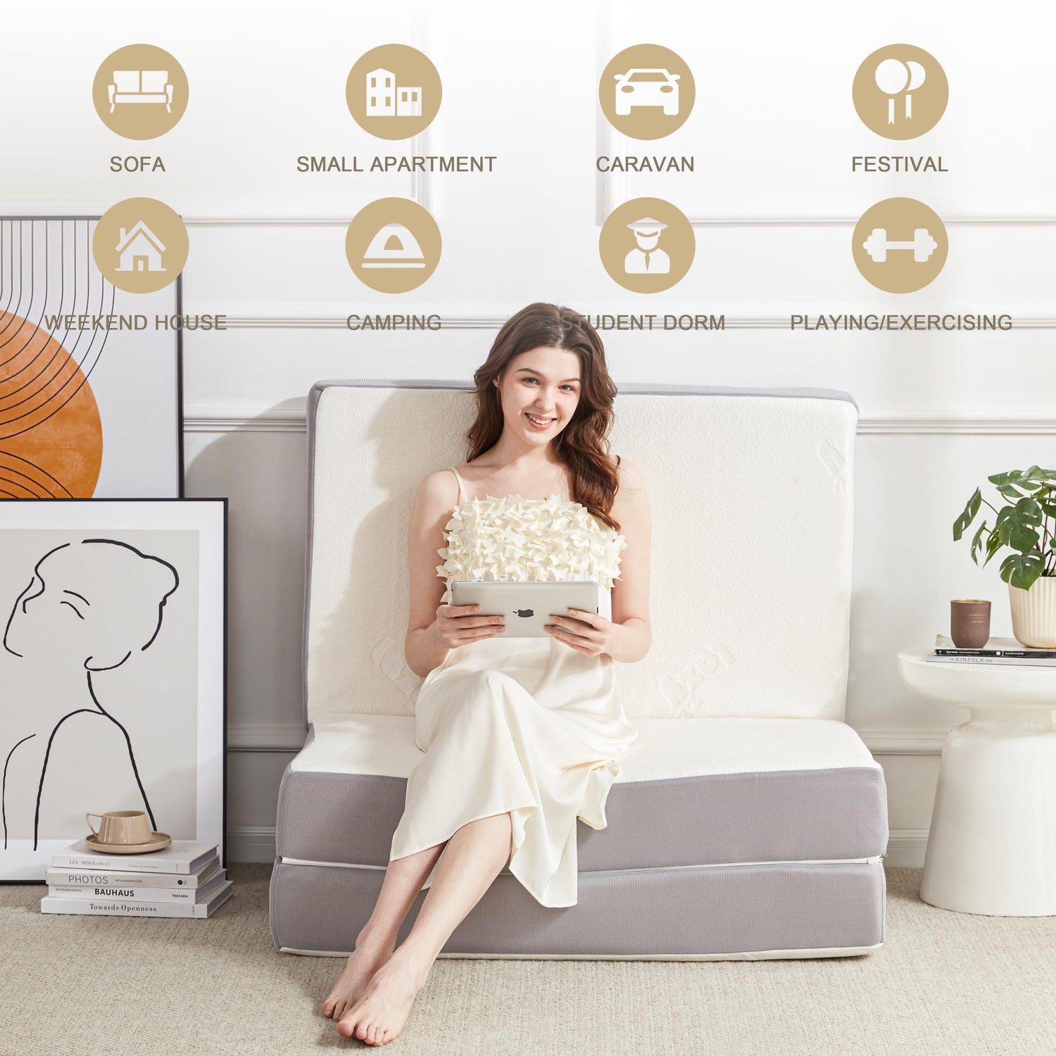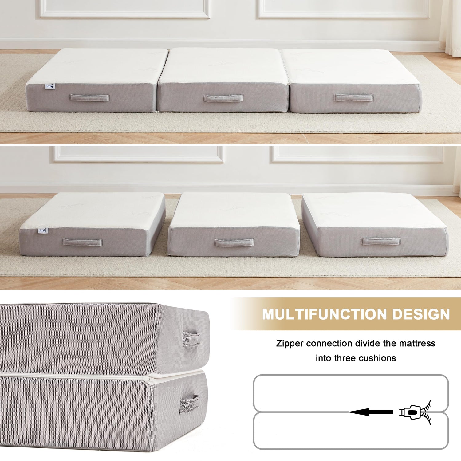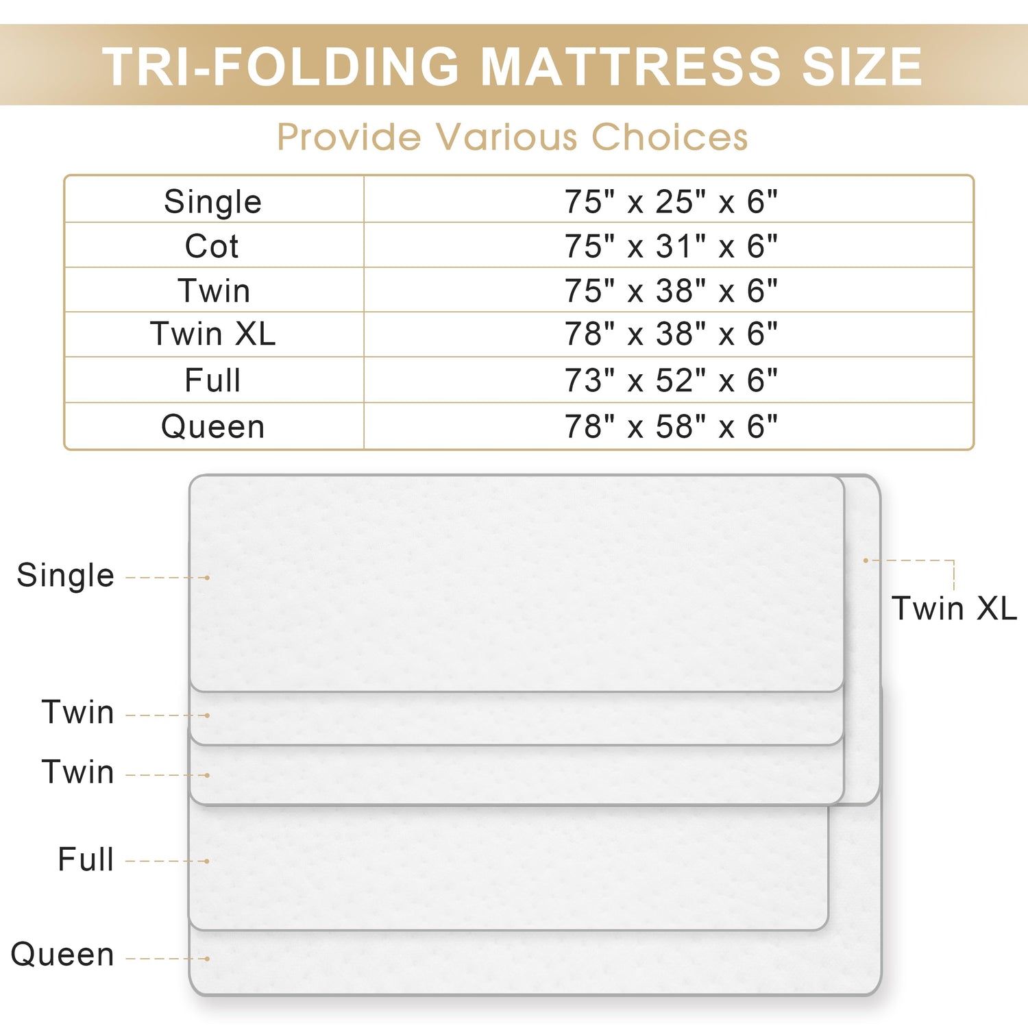 Lazyzizi Folding Mattress, 6 Inch Memory Foam Tri-fold Mattress with Breathable & Washable Bamboo Fiber Fabric Cover, Foldable Floor Mattress Guest Bed for Camping, Road Trip, Single