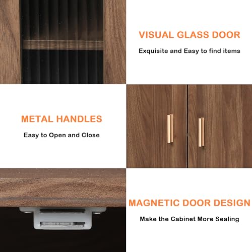 LAZZO Storage Cabinet Credenza Sideboard Buffet Cabinet with Glass Doors Free Standing Accent Entry Cabinet Coffee Bar Cabinet for Living Room, Hallway, Kitchen and Dining Room Brown