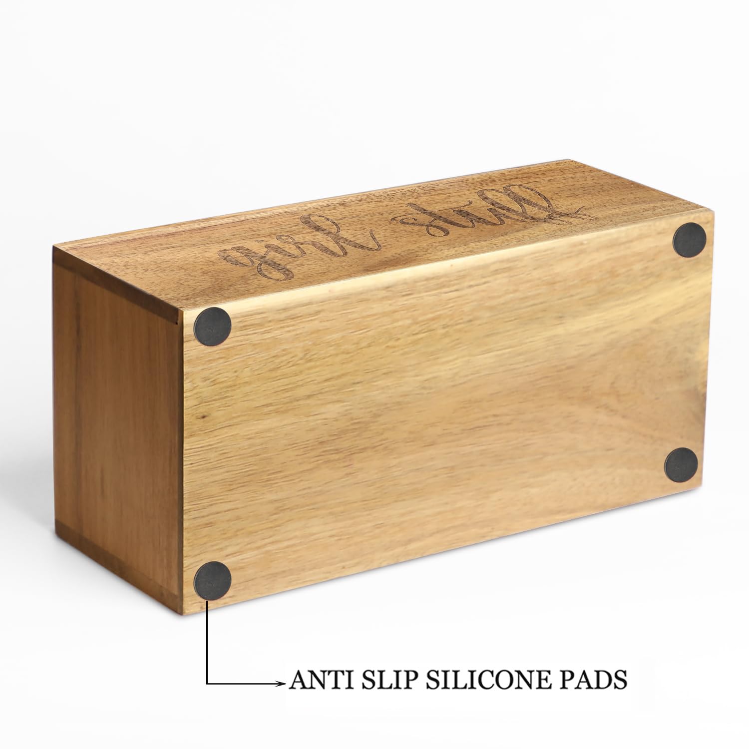 - Made of Natural Acacia Wood, our organizer is sturdy, reliable and lasting,and the unique grain and color are one-of-a-kind with natural beauty