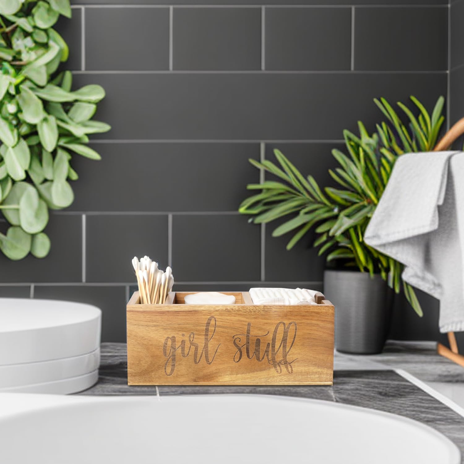 LBEMEY Acacia Wood Makeup Brush Holder, Organizer for Tampon, Cotton roud pads, Cotton Swab, Makeup,3 Compartments bathromm canister storage organization, Vanity Makeup Organizer, Tampon Holder