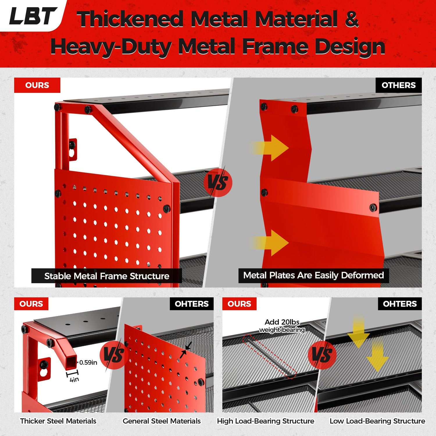 Details: LBT is a sturdy and durable garage tool storage rack. All metal structures are thickened, And each connection is 360-degree welded without dead corners to ensure sufficient load-bearing and durability. This modular garage storage rack can help you organize all your tools, From machetes, Drills, Chainsaws, Screws,Wrench,Tape measure,Tape And So On. The product is equipped with a US standard 6-hole socket and a 5-foot power cord. Can charge multiple charging tools at the same time. This is a very practical and beautiful garage storage tools, A great gift for fathers, Husbands and male friends.