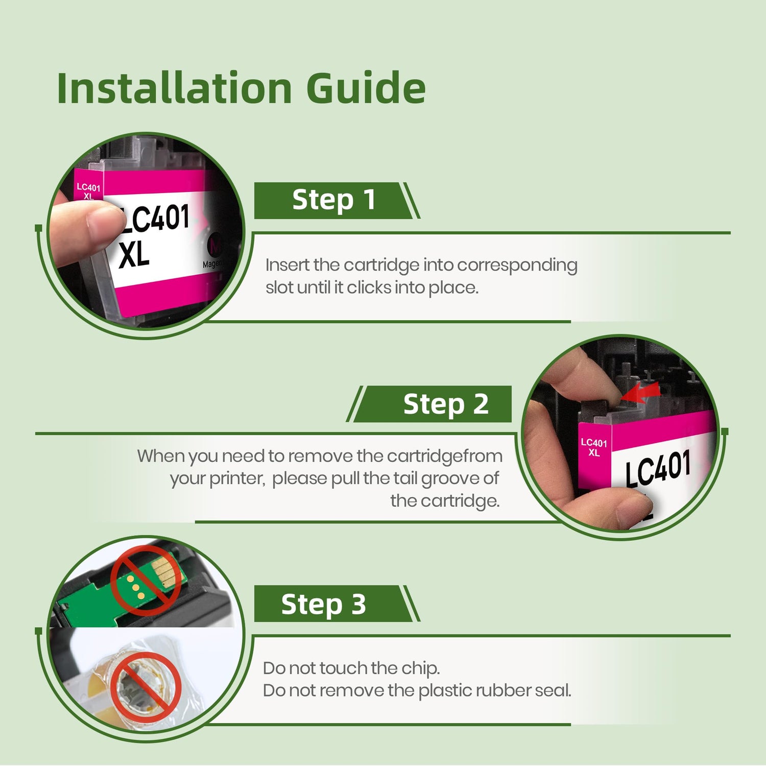 - Delivers Superior Quality: These lc401XL ink cartridges deliver outstanding results and reliable performance for up to 500+ pages per ink cartridge