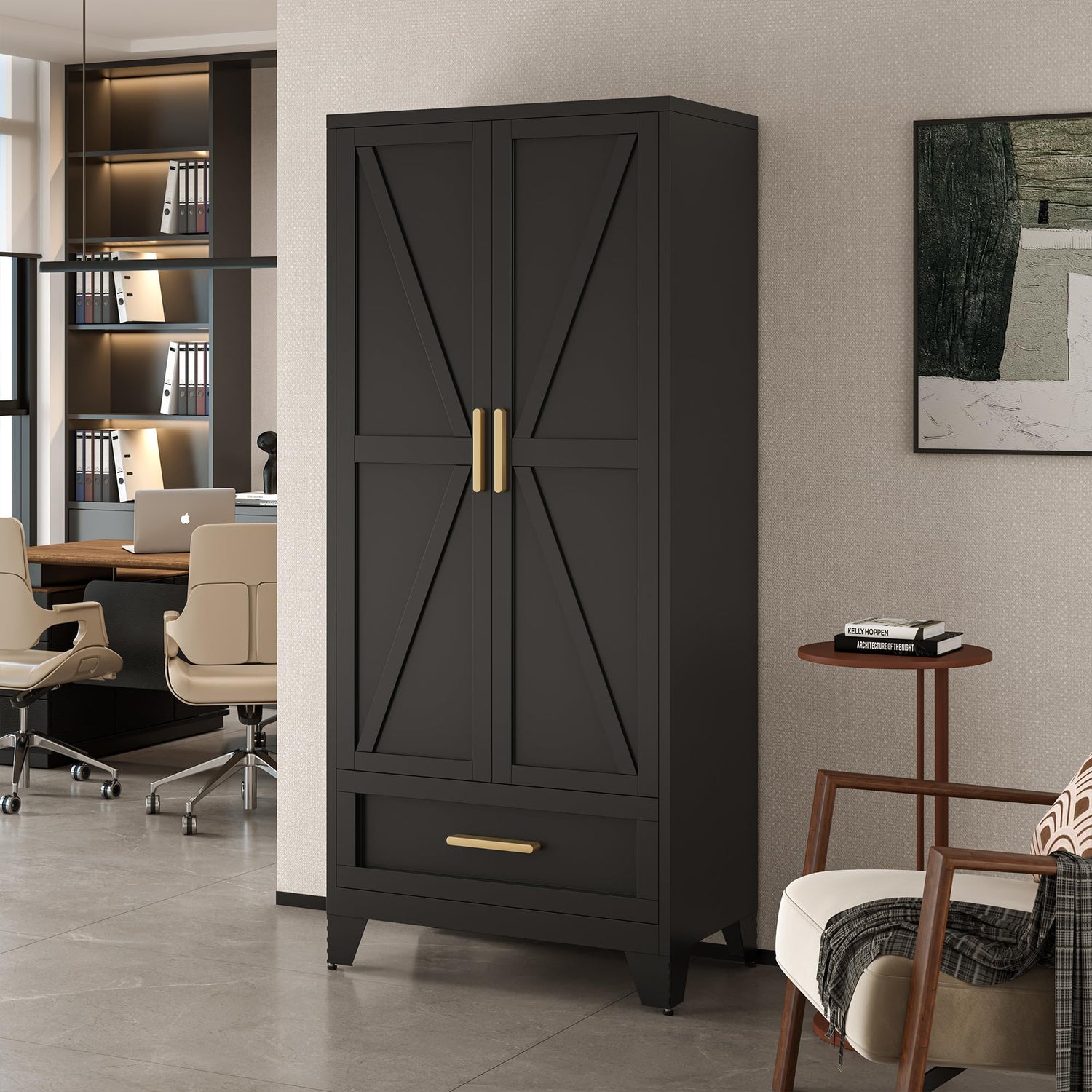 - Rustic Farmhouse Design: The door panels of this metal wardrobe feature a charming farmhouse design, blending traditional elegance with modern practicality. The aesthetic appeal of the cabinet makes it both a functional and decorative piece