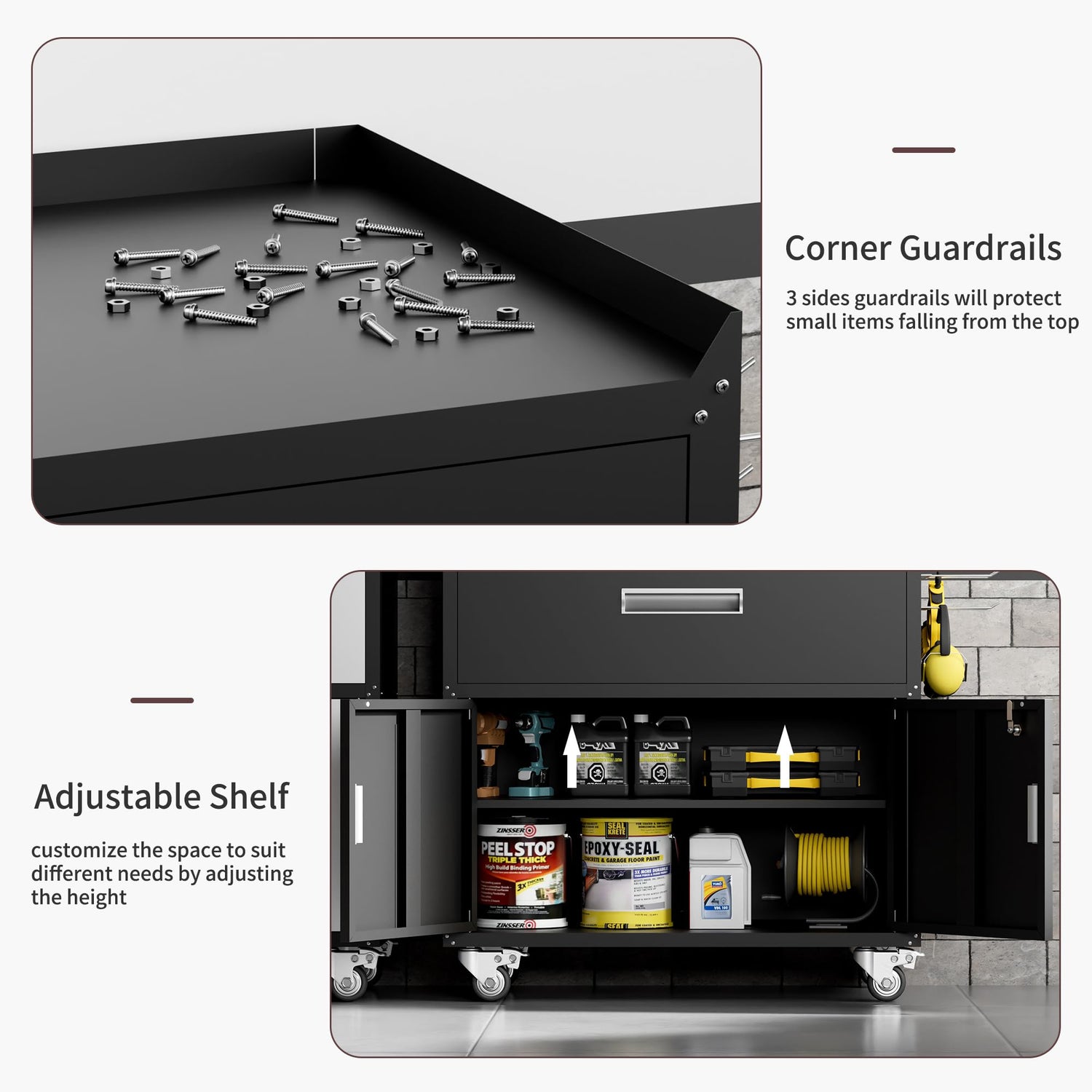LCAOPC Metal Garage Storage Cabinet with Wheels, Lockable Rolling Tool Chest with Wheels, Tool Cabinet on Wheels, Metal Rolling Utility Cabinet for Home, Office, Garage and Workshop, Black