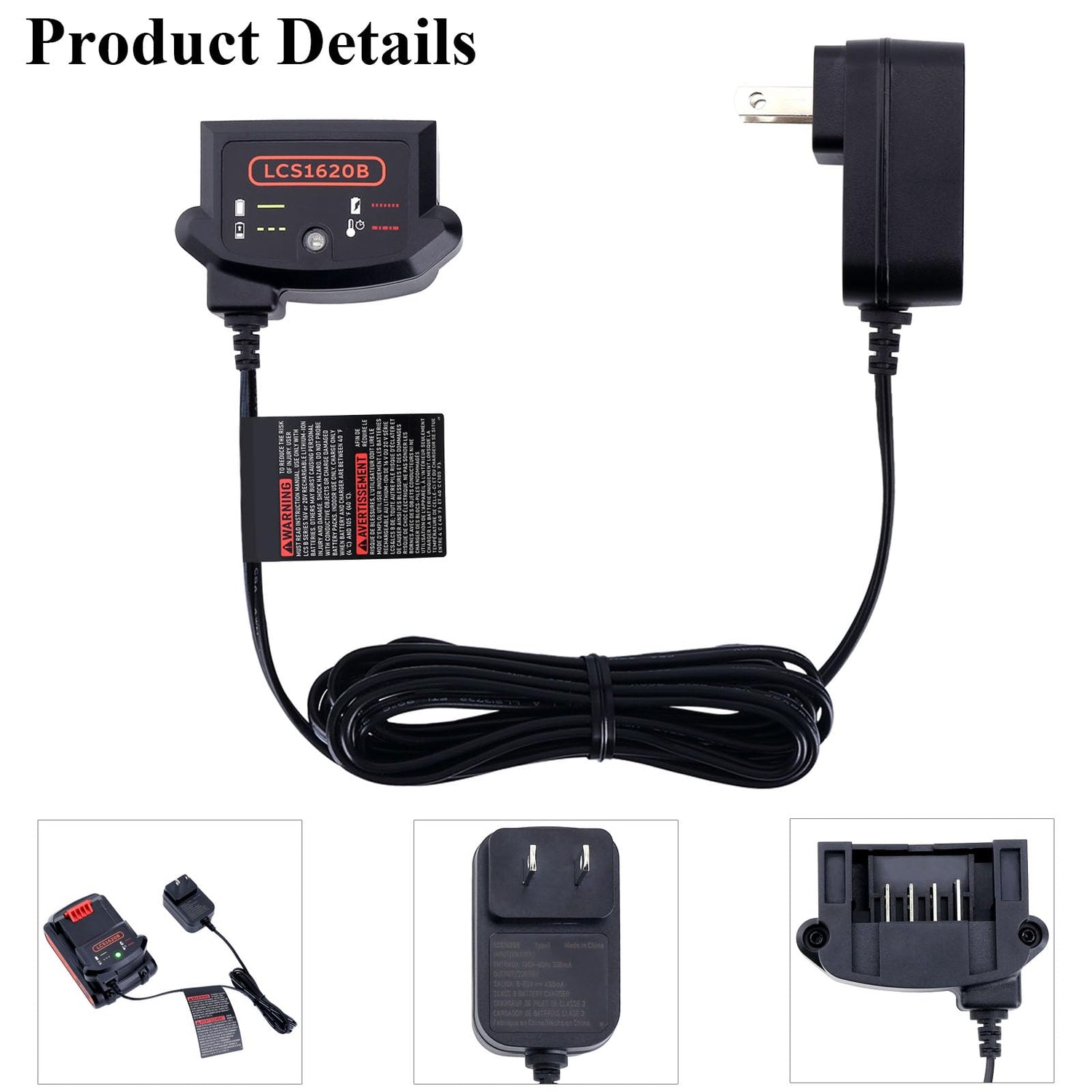 Details: LCS1620B Replacement for Black and Decker 20V Lithium Battery Charger, Compatible with Black and Decker 12V and 20V MAX Battery LBXR20