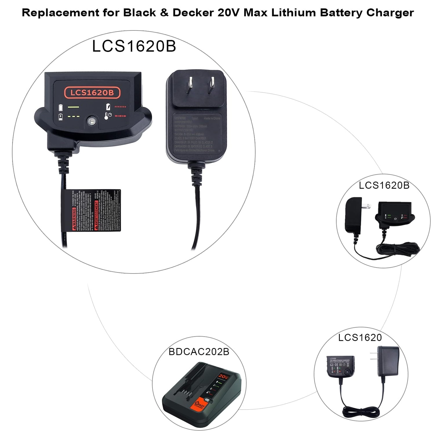 - Replace For Black and Decker 20V MAX Lithium Battery Charger LCS1620 LCS1620B LBXR20CK BDCAC202B.