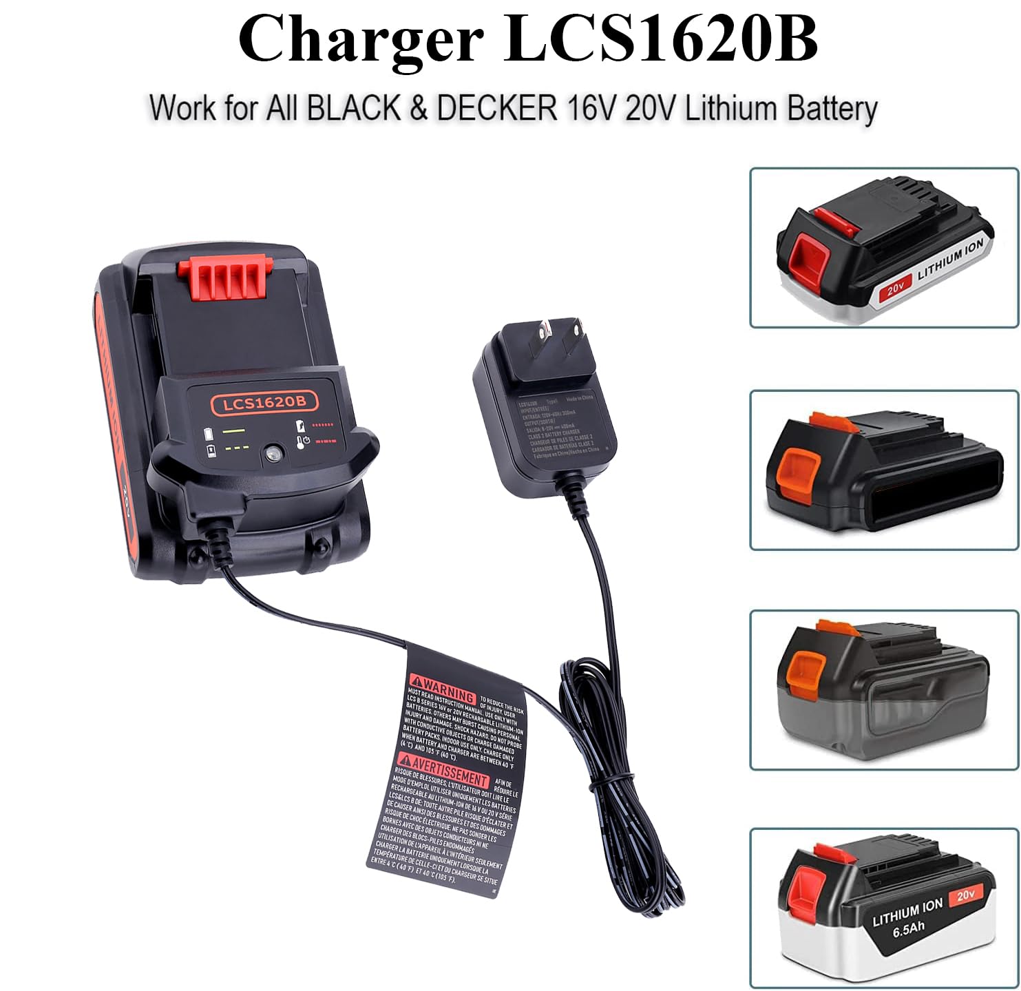 LCS1620B Replacement for Black and Decker 20V Lithium Battery Charger, Compatible with Black and Decker 12V and 20V MAX Battery LBXR20