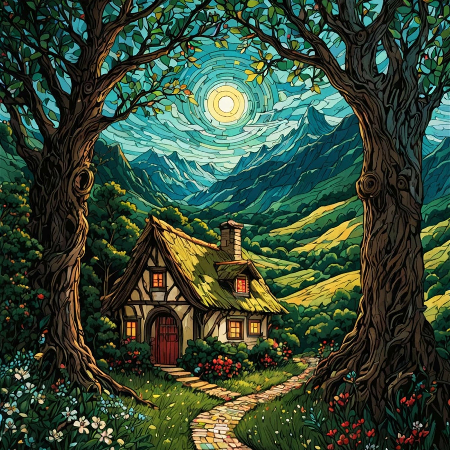 ldazao Landscape Paint by Numbers Kit for Adults Beginner Moon Forest Adult Paint by Number Kits On Canvas Adults' Paint-by-Number Kits DIY Oil Painting Kits for Gift Wall Decor 16x20 Inch