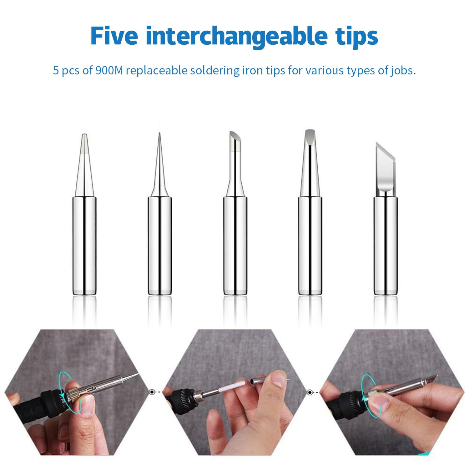- Interchangeable tips from broad chisel to super-fine for a variety of different projects, soldering on TV, phone, pad, computer, laptop, speaker wire, and circuit boards.