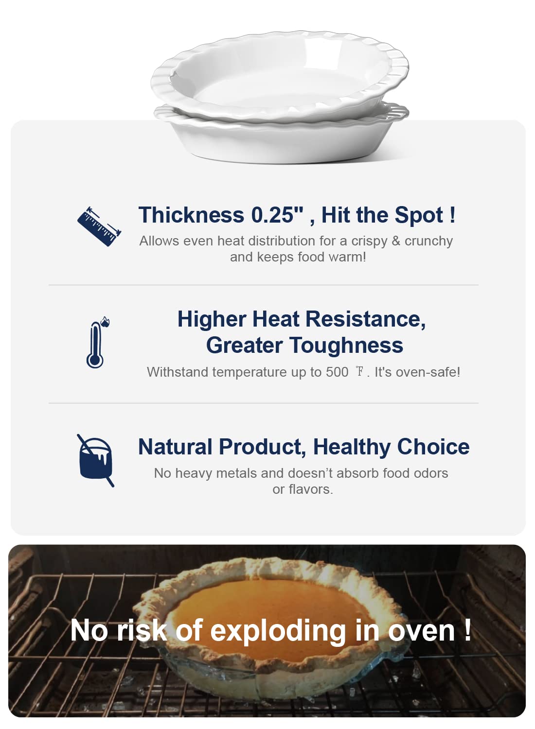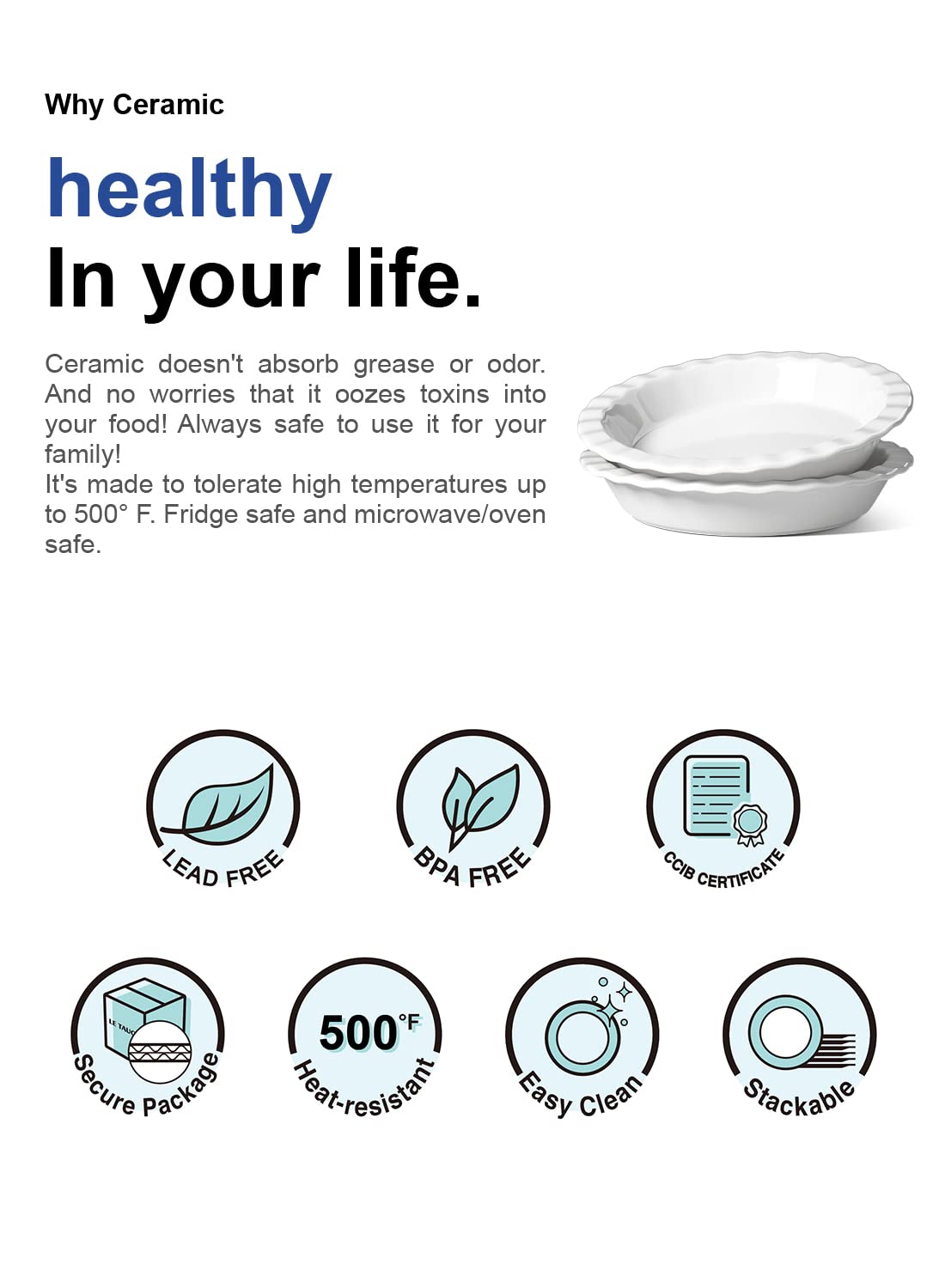 - Ceramics Is A Healthier Choice Than Metal Bakeware: The ceramic pie dish elevates pie baking from ordinary to art as it evenly distributes the heat during baking; Durable for everyday use; The highly resistant glaze does not absorb food odors or flavors