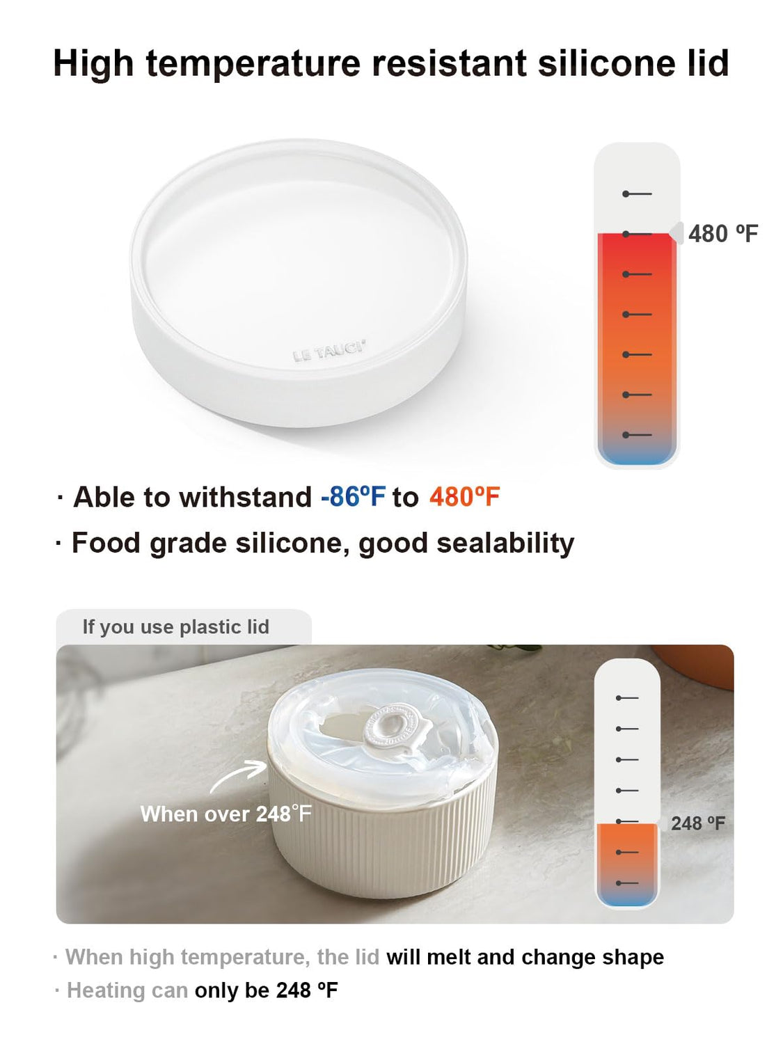- Upgraded Silicone Leak-Proof Lids: Made of high-tensile silicone, these oven-safe lids offer superior stretch, better sealing, and higher heat resistance compared to regular silicone. The longer edges fit securely on the ramekin, preventing leaks and ensuring freshness. Perfect for keeping food warm, storing leftovers in the fridge, or packing lunches on the go, these lids also make reheating effortless