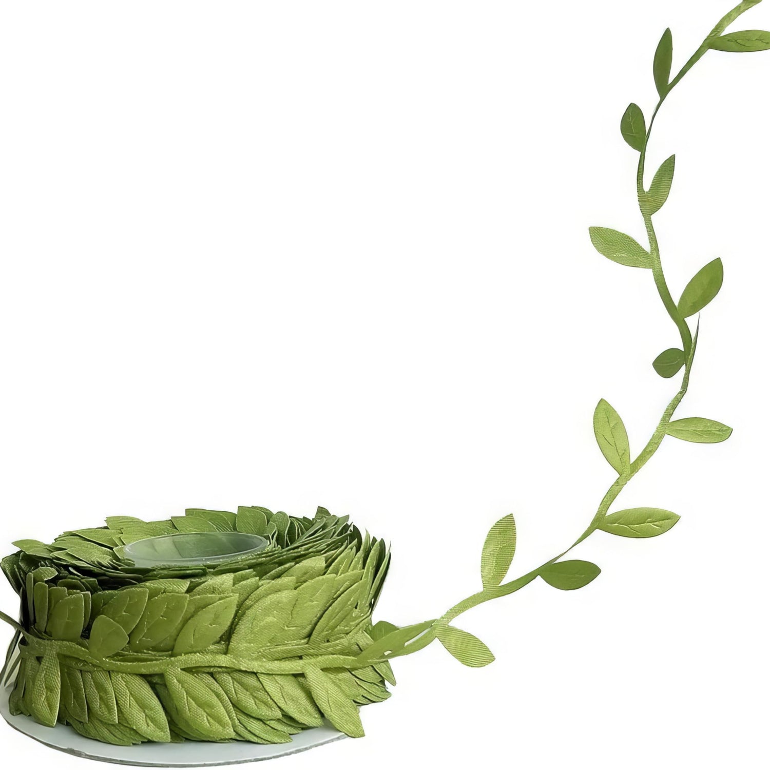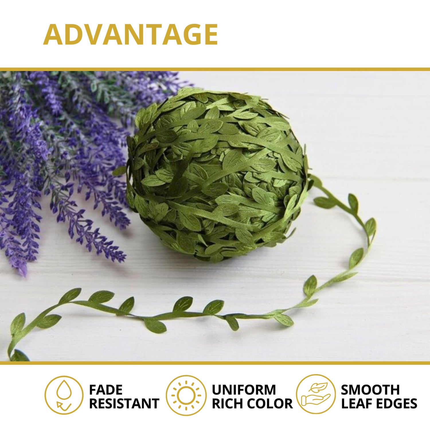 - Processed by impression technology, leaf vine ribbon features clear texture, satin finish and the entirety of it is in rich olive green. Leaf ribbon trim looks very vitality.