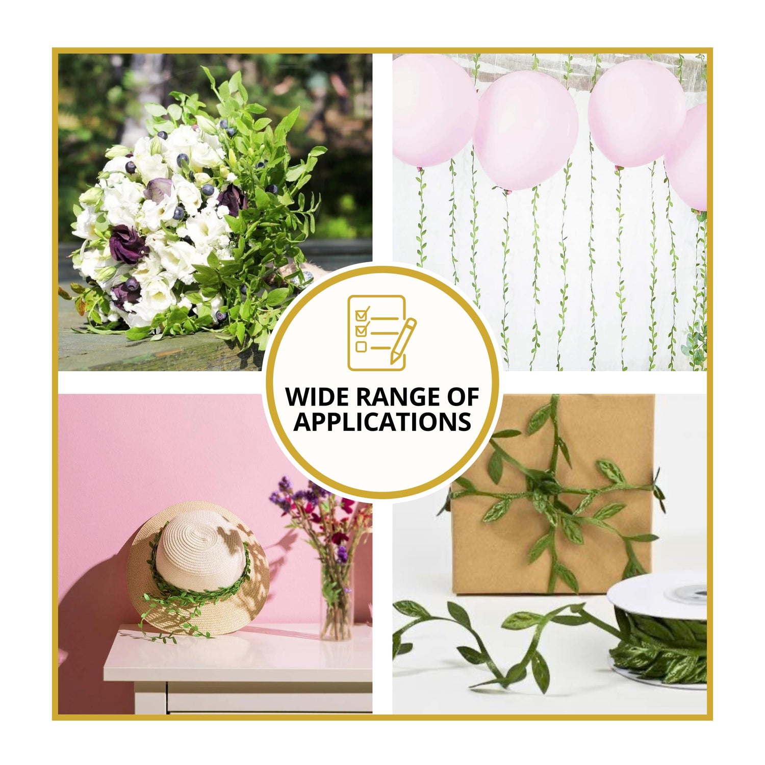 - Great quality faux leaf ribbon ideal for birthdays, weddings, garments, packaging, arts and crafts, scrap booking, centerpieces, table setting, bouquets