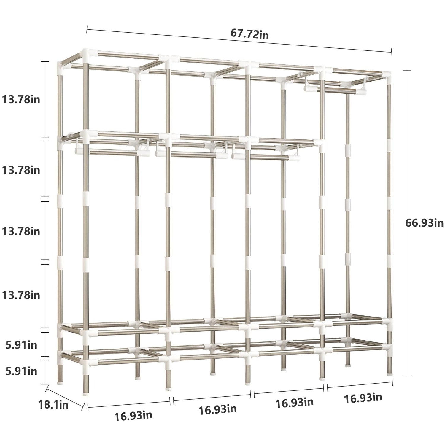 - 【Keep Your Clothing Organized Well】: Its size is 67.7(L)*18.1(W)*66.9(H) inches,large capacity.You can classify and stack all your clothes to keep your room away from clutter.Easy to organize and stores a lot,suitable for bedroom,corridor,basement,garage,office.