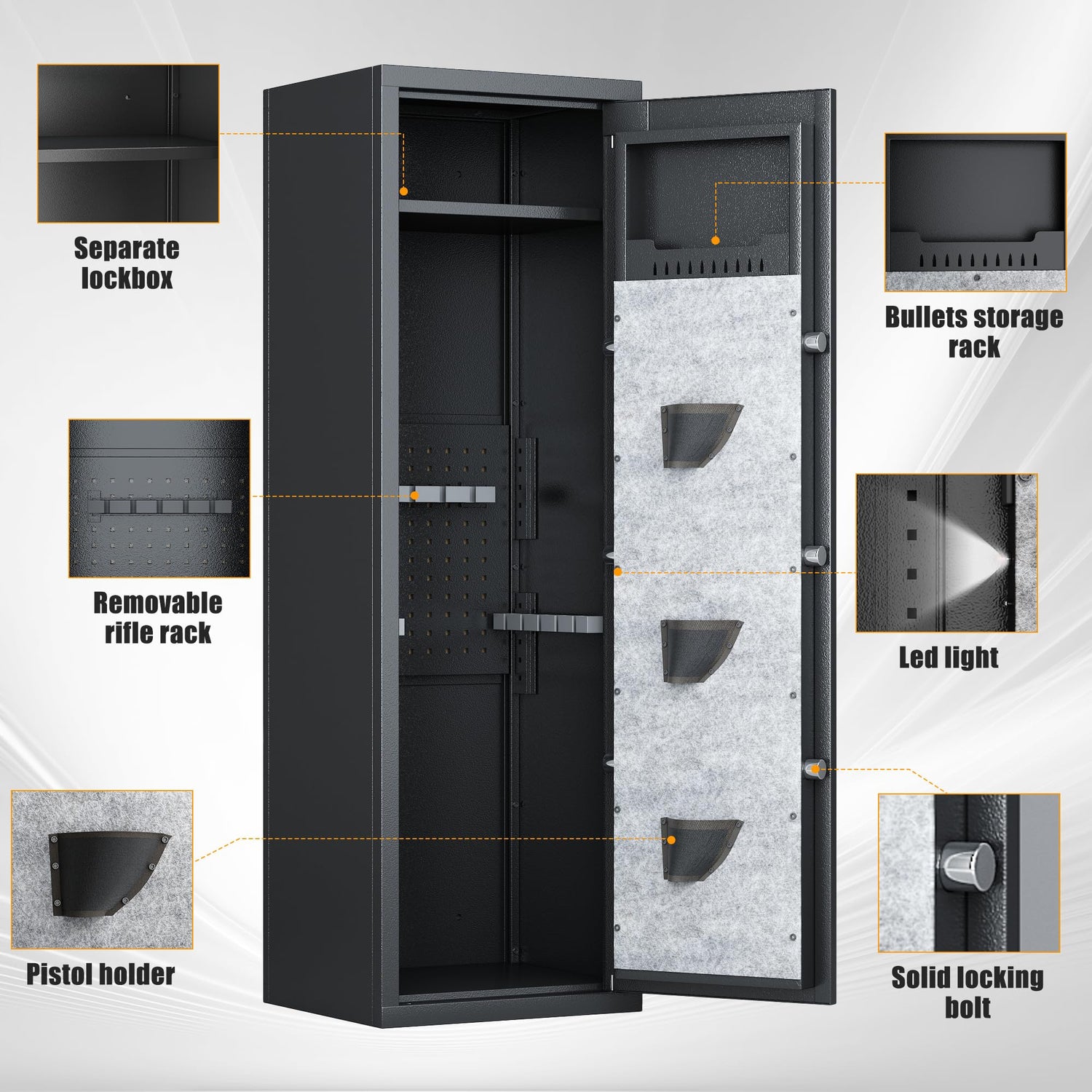 Leariso Biometric Gun Cabinet, Home Safes for Rifles and Pistols, Rifle Gun Safe for Handgun with Adjustable Shelves and Pockets, Gun Cabinet with Alarm Function, Gun Locker, Easy Installation