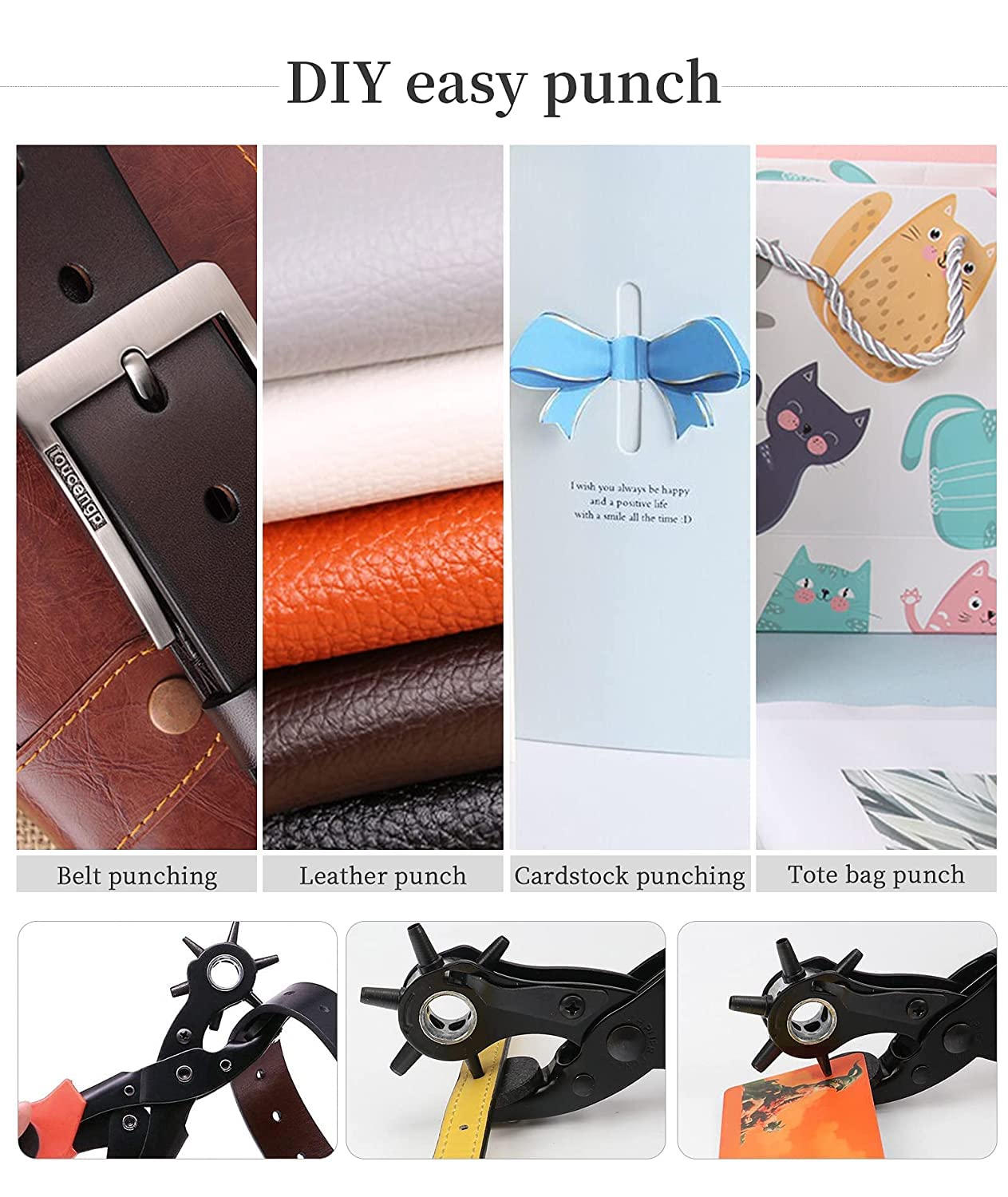 Leather Hole Punch, Belt Hole Puncher for Leather, Revolving Punch Plier Kit, Leathers Puncher Plier for Belts, Watches, Handbags, Punch Tool Diameter: 4.5/4 /3.5/3/2.5/2mm.