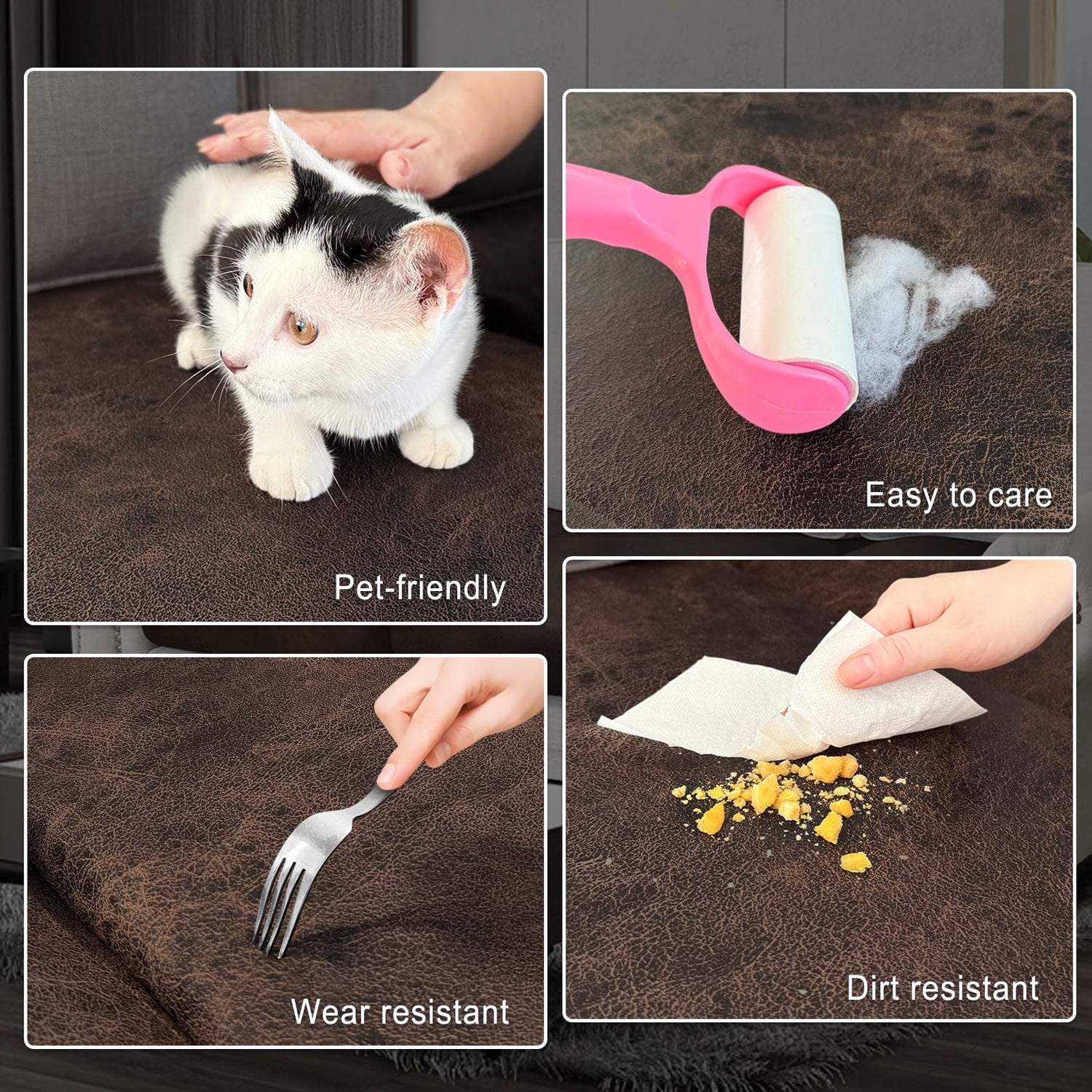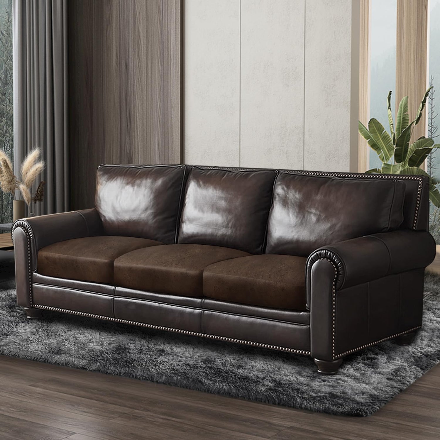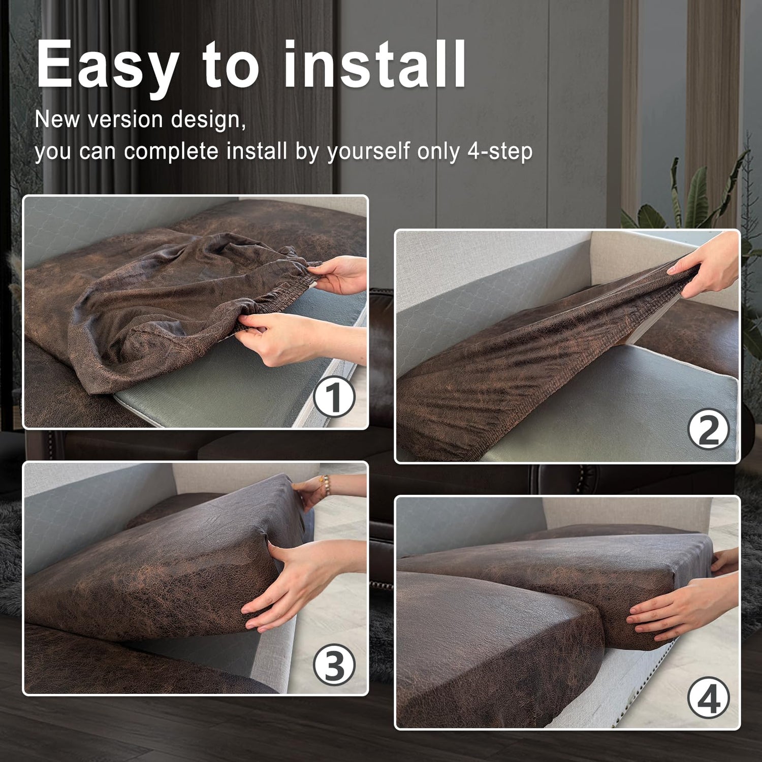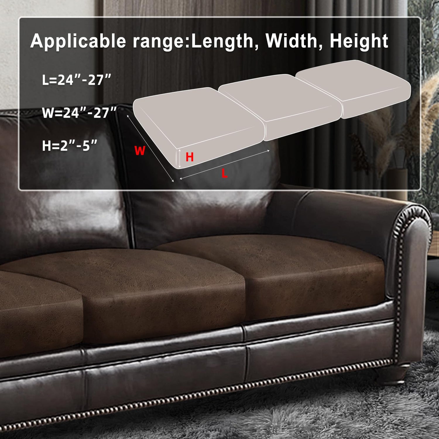 Leather Look Couch Cushion Covers Sofa Seat Slipcovers Sets Couches Furniture Protector for Sectional Armchair Loveseat Pets Kids Stretch Spandex Fabric, Machine Washable (3 Cushion Sofa, Brown)