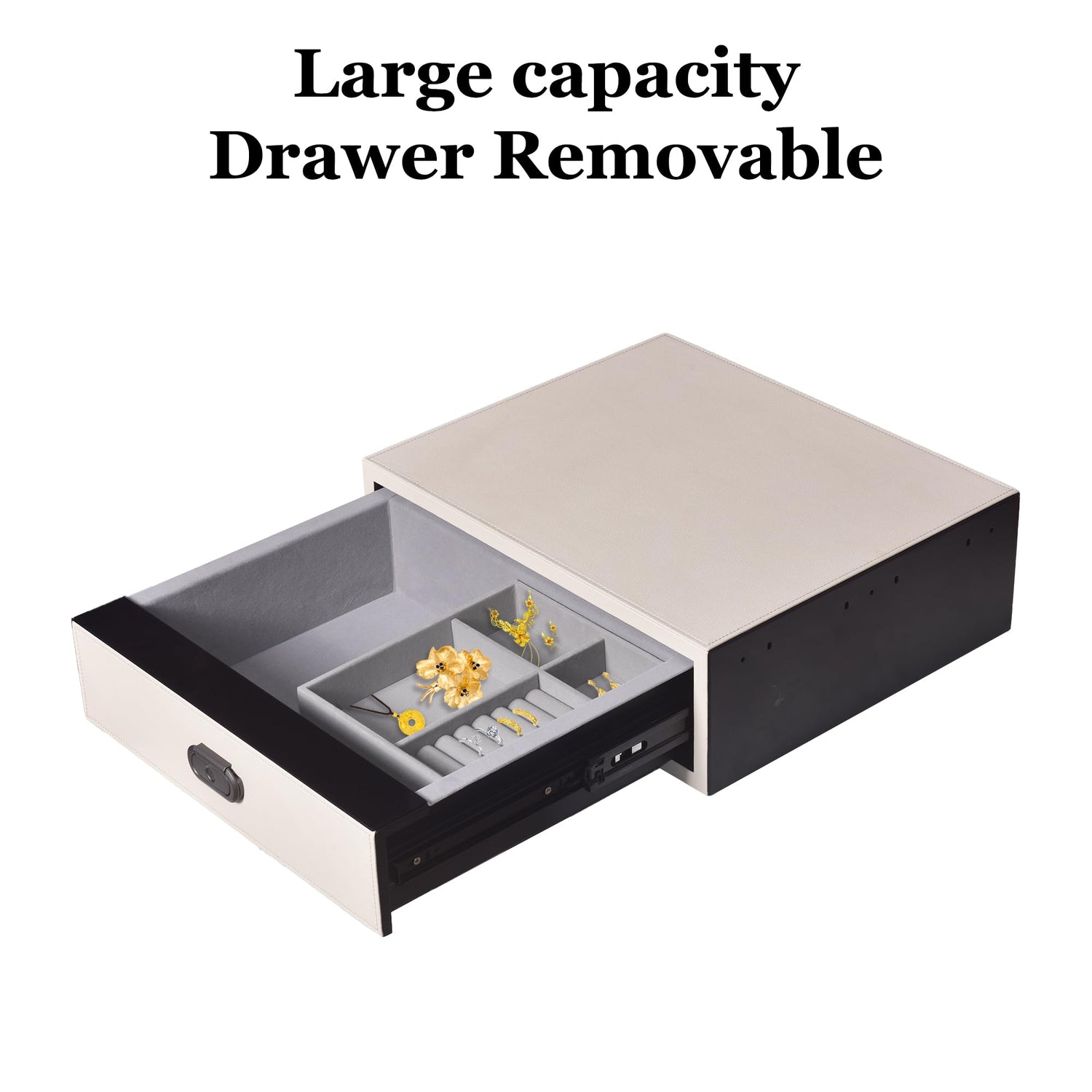 - Intelligent Quick-Access Home Safe Box:Experience lightning-fast entry with our advanced fingerprint recognition system that automatically pops open the drawer upon verification. The perfectly sized 18.89"×5.98"×15.82" house safe includes removable dividers, allowing seamless conversion from jewelry safes for home to secure gun safe for pistols storage. Hidden backup key access is discreetly located behind the lock mechanism