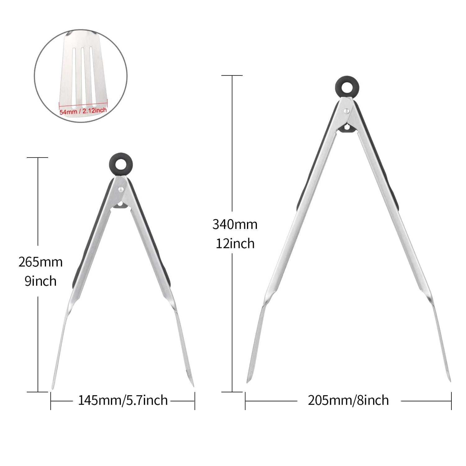 • 【Widely Applied】The food tongs is perfect for basic kitchen tasks, indoor or outdoor use. And it is great for grilling corn, flipping burgers and waffles, serving salad, cutting roast meat and much more