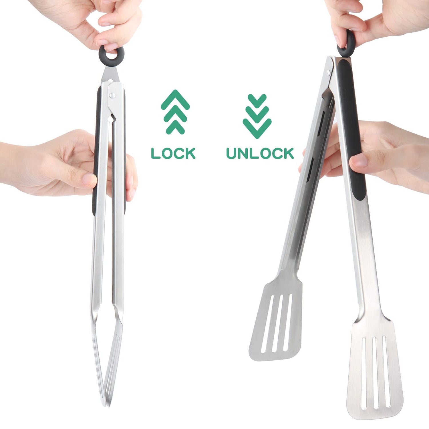 • 【Easy Pull Lock】Our heavy duty tongs have a locking device that can be operated only by pushing and pulling. After use, pull on the locking device, and you can store it easily