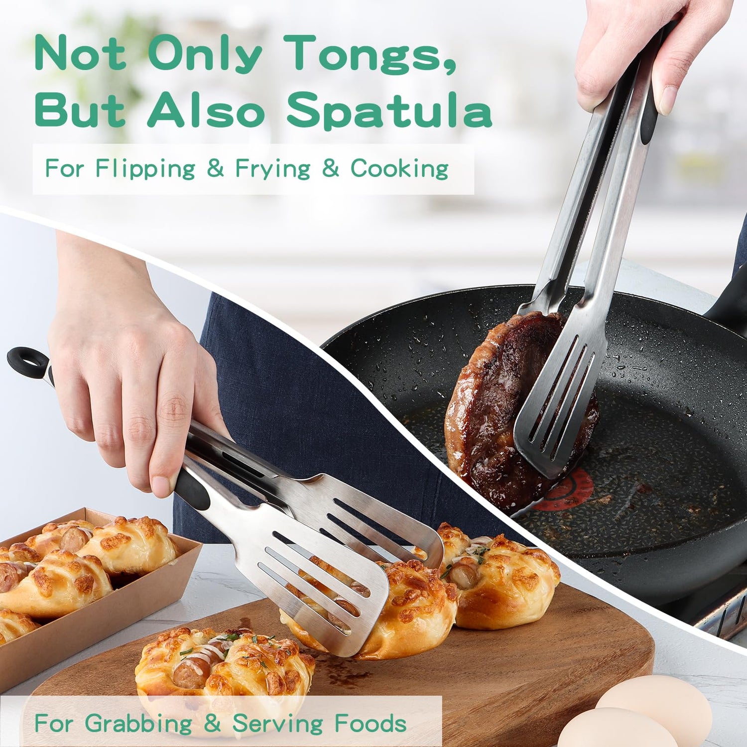 • 【Unique Spatula Head】The meat tongs feature spatula head designed to easily grab the big and heavy foods with effortless precision. Even you can used as BBQ turners. Not only kitchen tongs, but also camping tongs