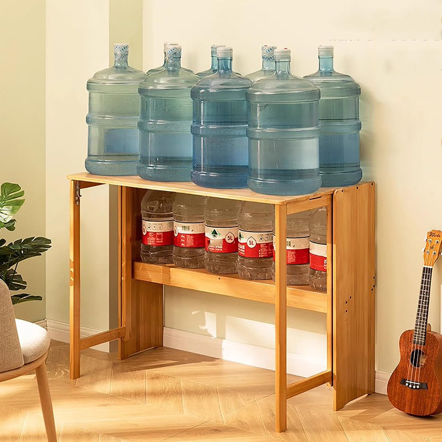 Lebolna Collapsible Desk for Small Spaces,Bamboo Folding Writng Working Computer Desk,Expandable Design with Shelves,Rustic Foldable Desk Table Home Office Fold Up Desk(33" W, Brown)