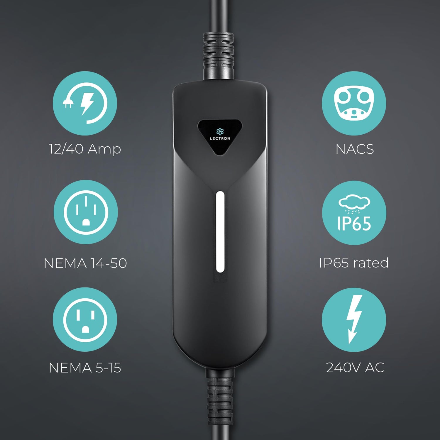 Lectron Level 1/2 (12A & 40A) Tesla NACS Portable EV Charger - Dual-Level Electric Vehicle Charging Station with NEMA 14-50/5-15 Plug - Compatible with All NACS Electric Vehicles