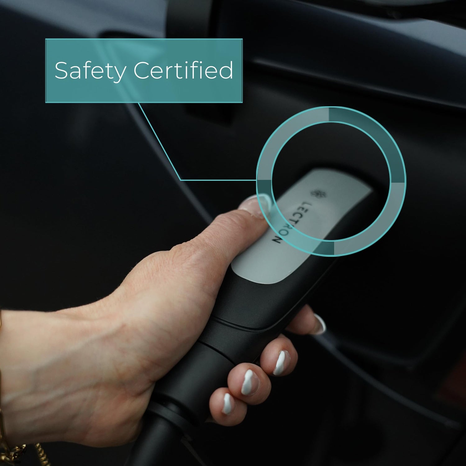 - SAFE & RELIABLE- This portable Level 1/Level 2 EV charger is UL-certified and is built with overvoltage, overcurrent, and over-temperature protection. It also features a release button for a safe and secure connection between your EV and the charger