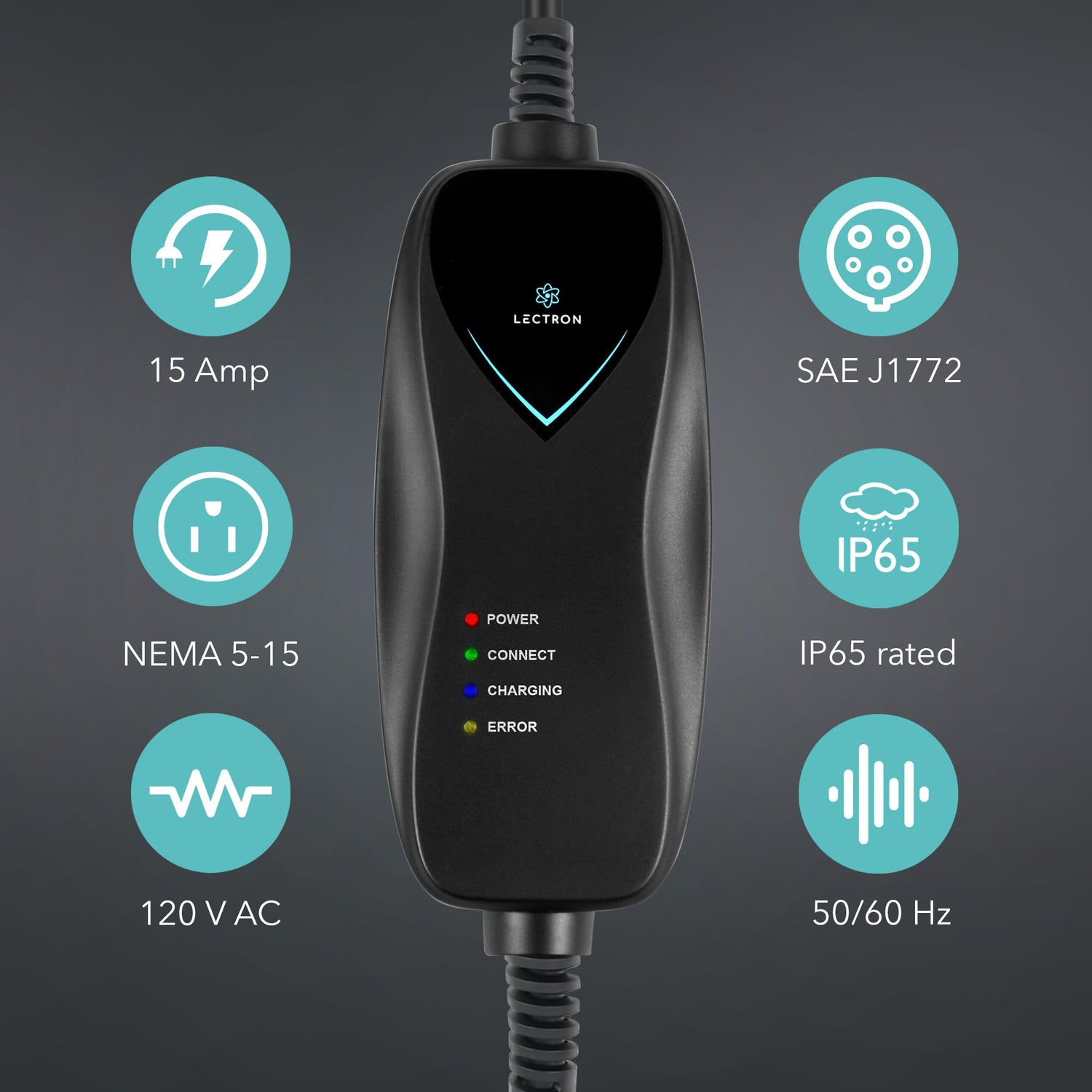 - LEVEL 1 CHARGING - The Lectron Level 1 Charger lets you quickly charge your EV with a standard 110V outlet; You get 15 amps and 1.65 kW of power for the standard full-charge time for your car, at home or at work