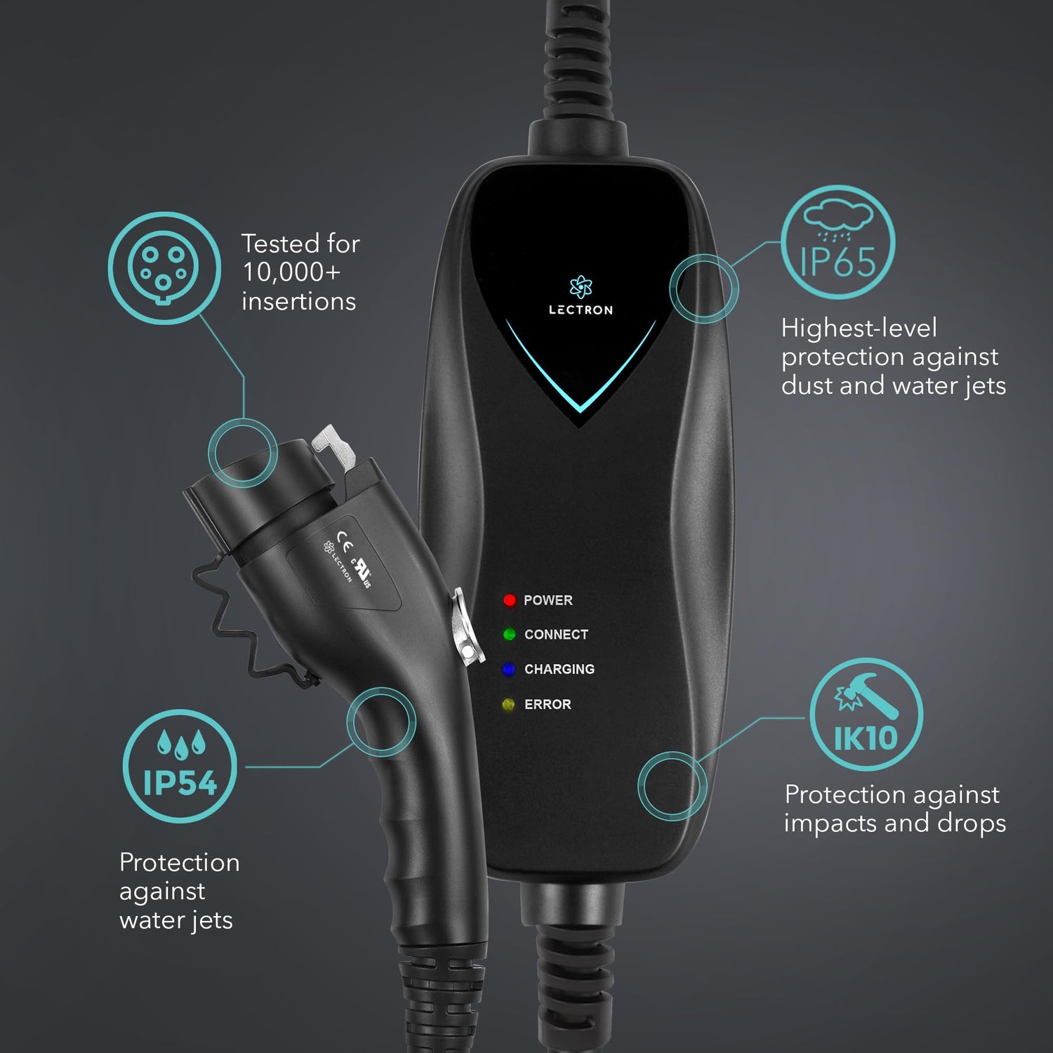 Details: Introducing the Lectron Level 1 Charger, the convenient and affordable solution for charging your electric vehicle (EV) at home, work, and on the go. With its ability to deliver a steady 15 amps of power, our charger ensures you get the full charge you need every time. Compared to other Level 2 EV Chargers, the Lectron 15 Amp EV Charger is a more affordable option that won't break the bank. It's the perfect choice for those who want to charge their EV at home without spending a fortune. The J1772 charger seamlessly and conveniently works with all EVs that use the J1772 standard, including popular models from BMW, Ford, Honda, Hyundai, Kia, Porsche, Nissan, and Chevy. Safety is a top priority with the Lectron 15 Amp EV Charger. It's built with IP65 weather-resistant materials and features built-in protection against overvoltage, overcurrent, and short circuits, for safe and reliable charging every time. This highly portable Lecrton Level 1 EV charger is perfect for those on the go. Whether you're on a road trip or visiting a friend, you can easily plug in your EV and recharge where and when you need it. It's the perfect combination of convenience, affordability, and reliability. With its compact and user-friendly design, installation is a breeze - simply plug it into a standard 110V outlet and you can start charging your EV. No complicated setup required! Thanks to its IP65 weather-resistant design and built-in protection against overvoltage, overcurrent, and short circuits, you can trust that your EV charger will deliver safe and reliable charging each time you need it.