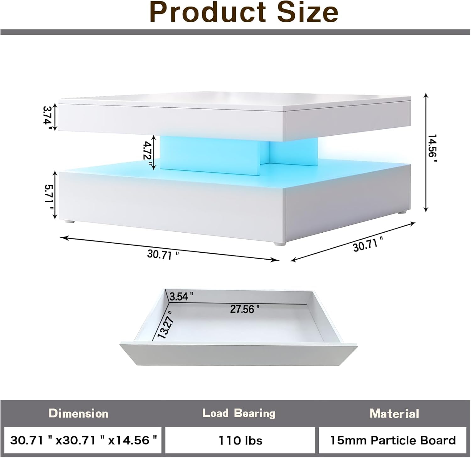- 【Ample Storage Space】2-Tier Modern coffee table with built-in drawers (28" x 15" x 5.71") brings plenty of storage space, convenient for storing books, wine glasses, remote controls, snacks and various other items, keeping your living room clutter-free and organized.