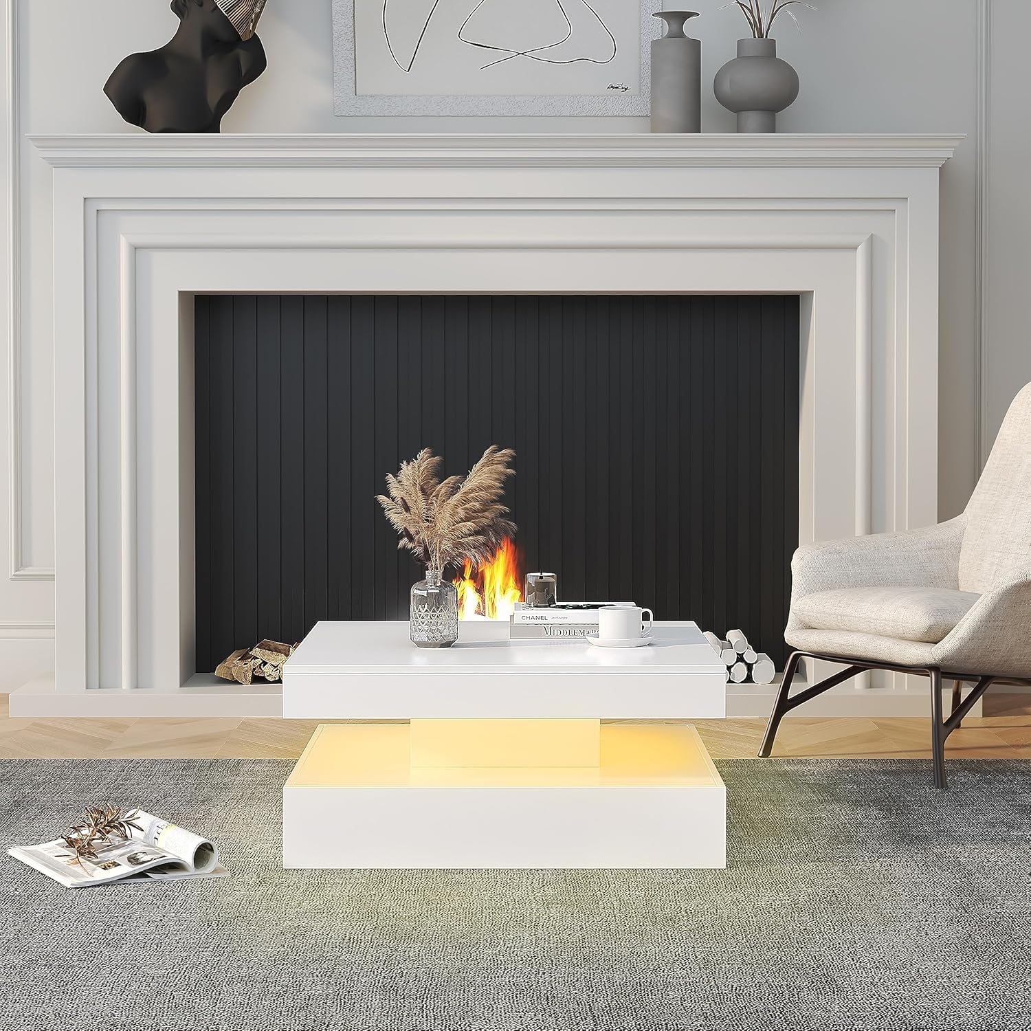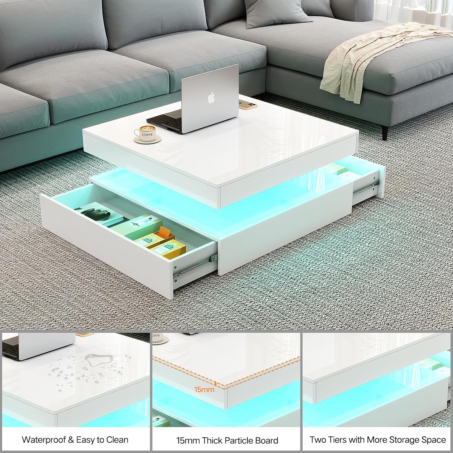 - 【Immersive LED Experience】Featuring 16 captivating colors and 4 lighting modes, our LED coffee tables bring vibrancy to your space. Effortlessly adjust the brightness and modes of the LED lights with the remote control, creating the perfect ambiance for any room.
