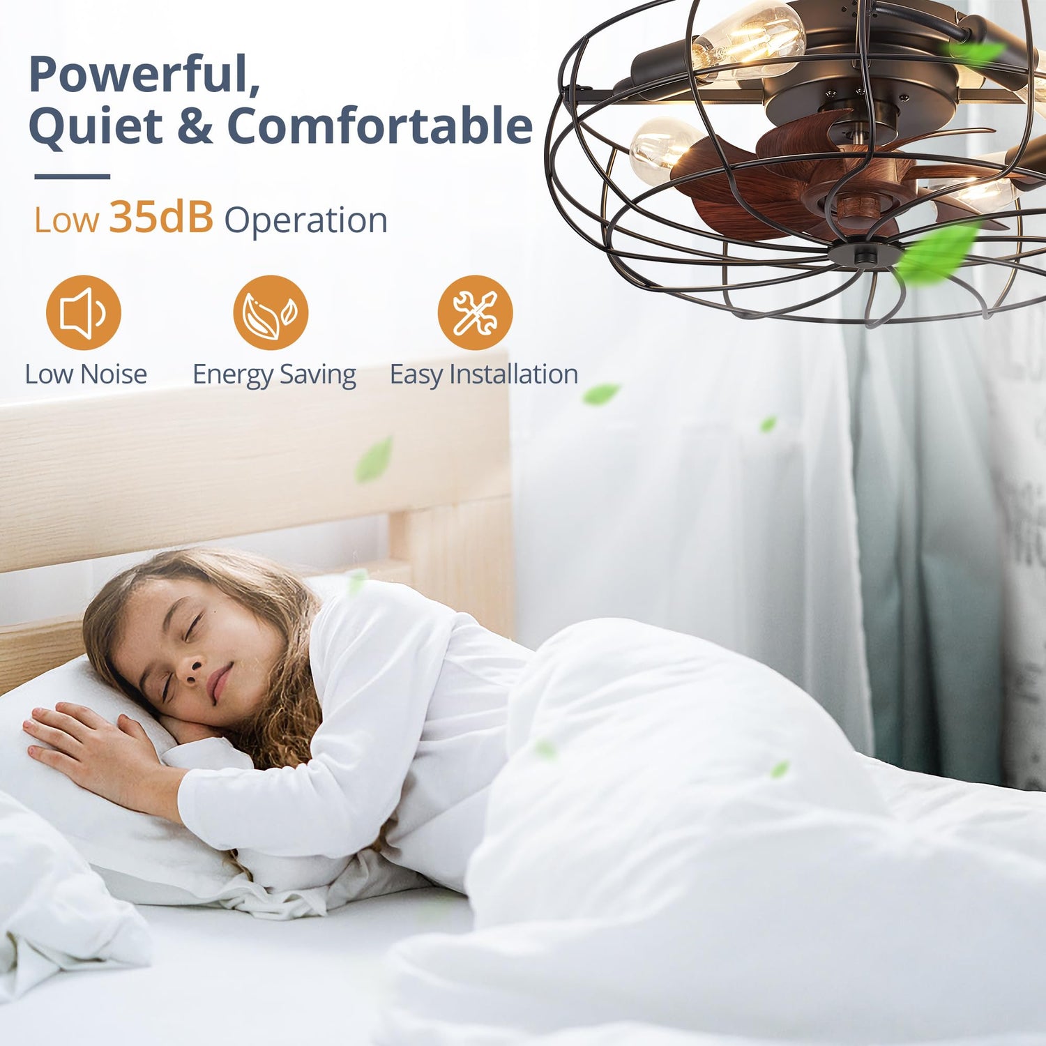 - Powerful&Quiet Motor: Pure copper DC motor provides strong and steady wind power, 35dB low noise provides ideal quiet enviroment. Reversible motor allows to bring warm air in the winter and cold air in the summer