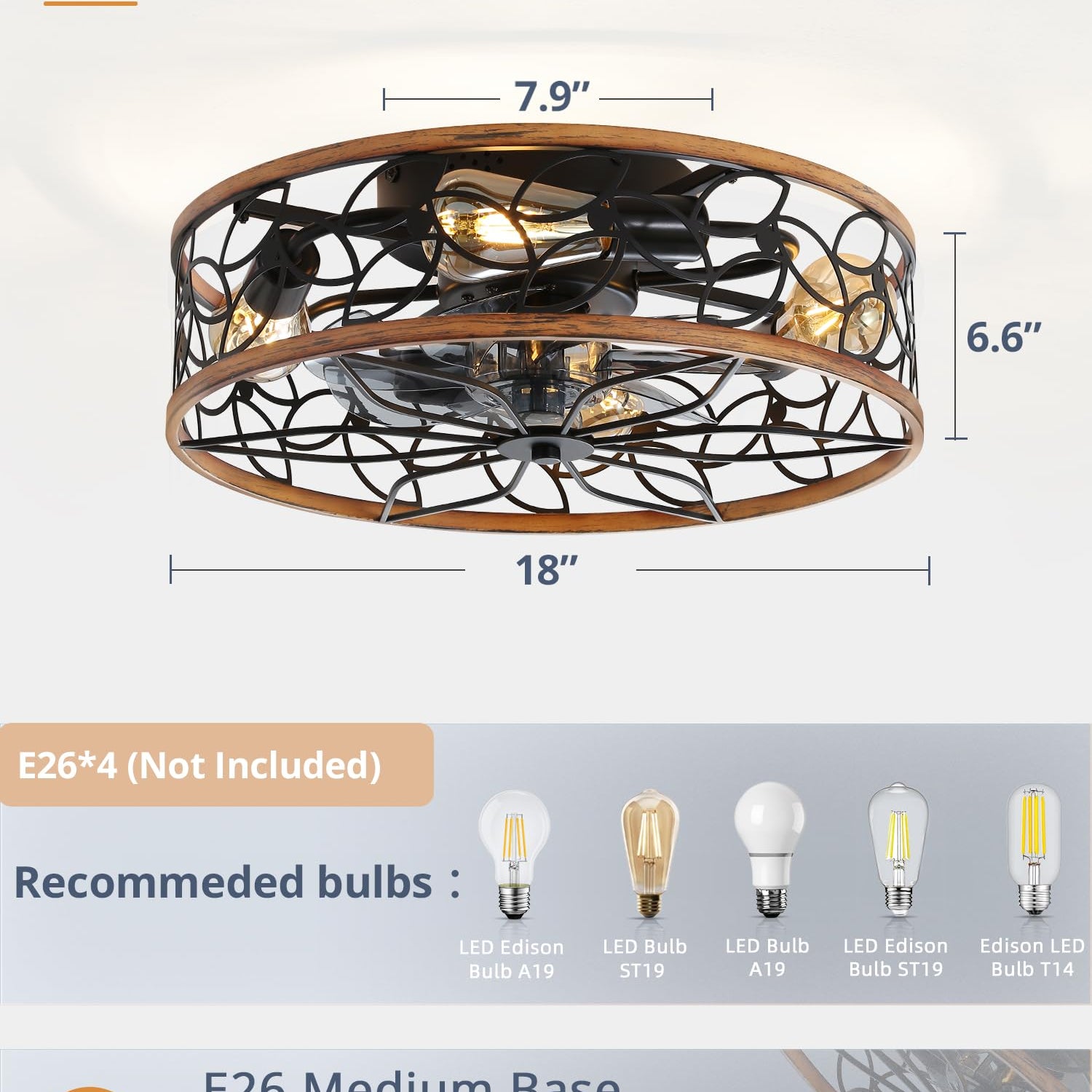 - 【Bulbs Not Included】4*E26 bulbs needed. You can select the bulbs as your like and habit. Recommeded bulbs:A19 ST19 T45, Incandscent light bulb-Max 60W, LED light bulb-Max 10W